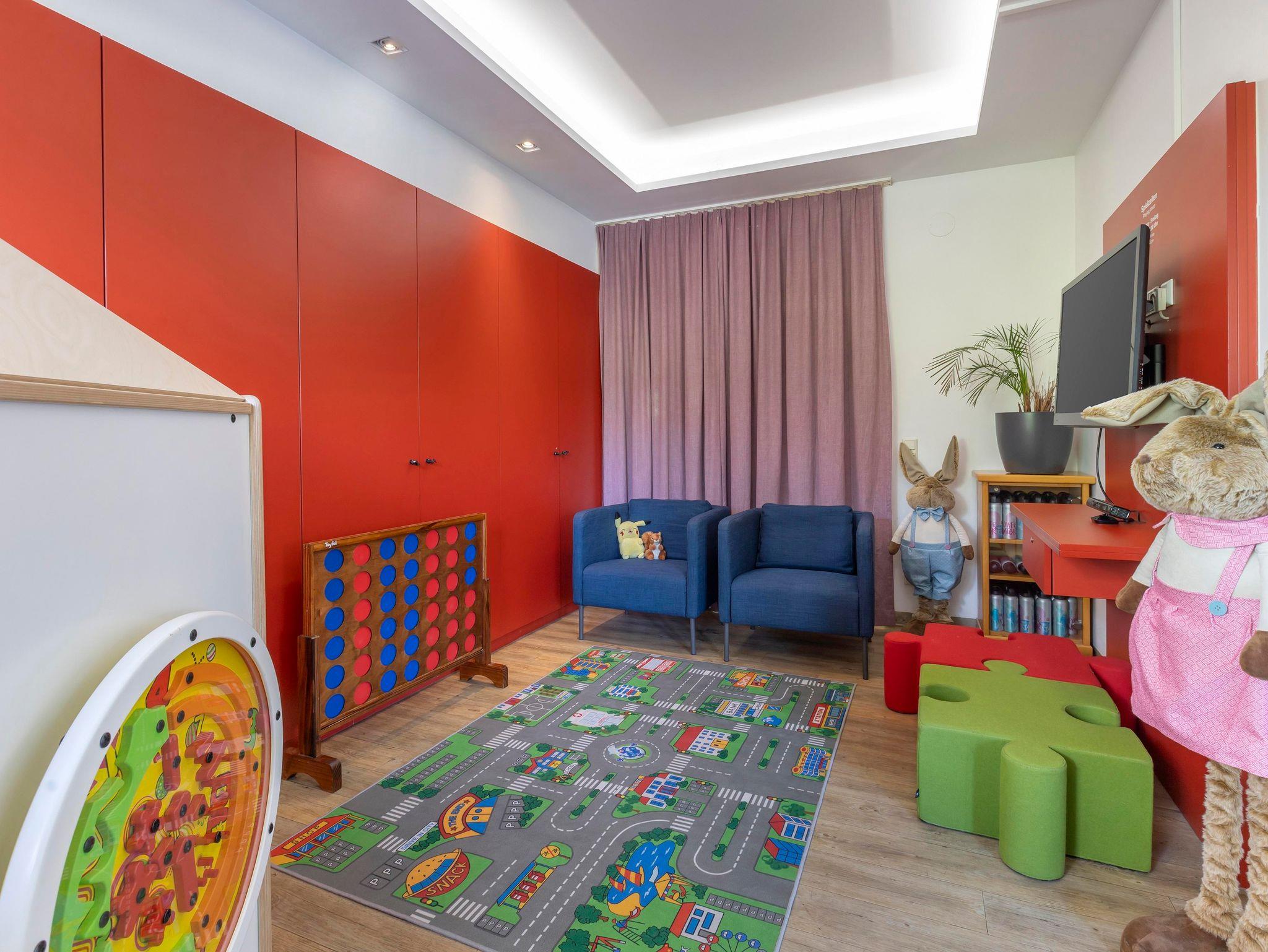 Alle Gäste unseres Hauses haben freien Zugang zum hauseigenen Wellnessbereich mit einer Sauna und einem Fitnessraum. Ein Privatparkplatz pro Appartement und WiFi stehen natürlich kostenlos zur Verfügung. Weitere Annehmlichkeiten des Hauses: Tennisplatz, Kinderspielplatz und Spielzimmer.