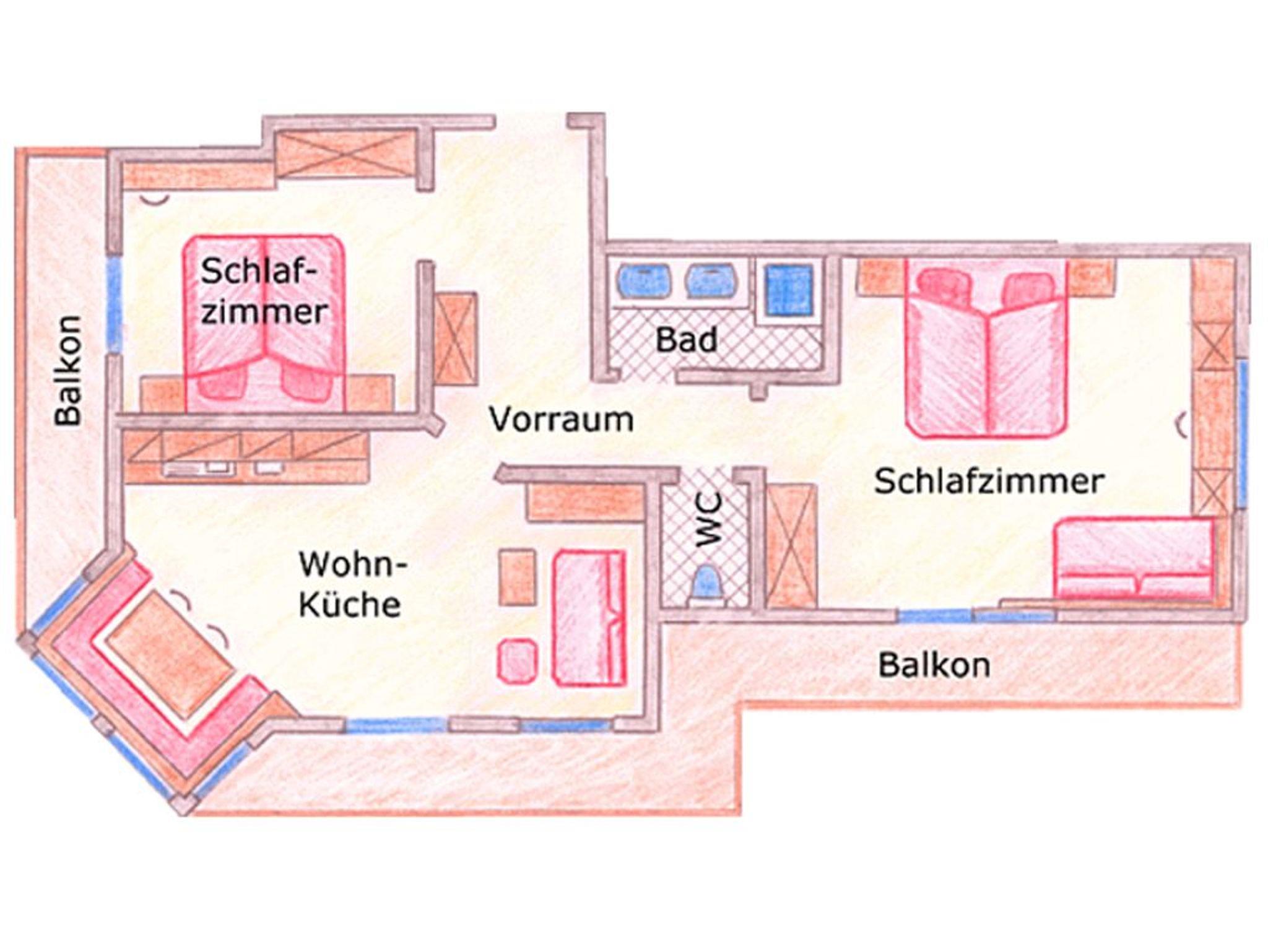 2 Doppelbettzimmer und Du/WC getrennt und 2 Balkone
