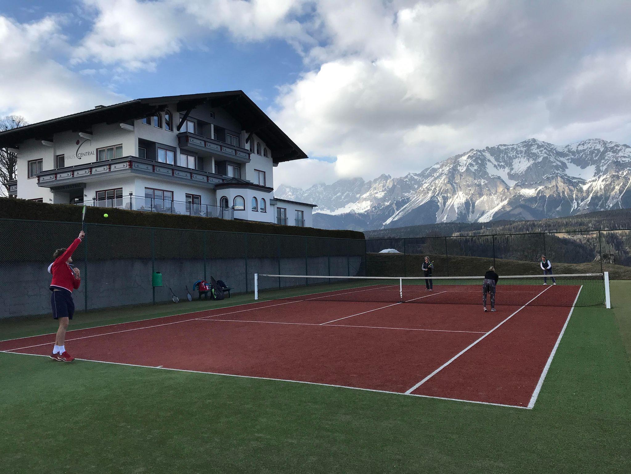 Gemütlicher Aufenthaltsraum, Sauna und Infrarotkabine, 2 hauseigene Tennisplätze.