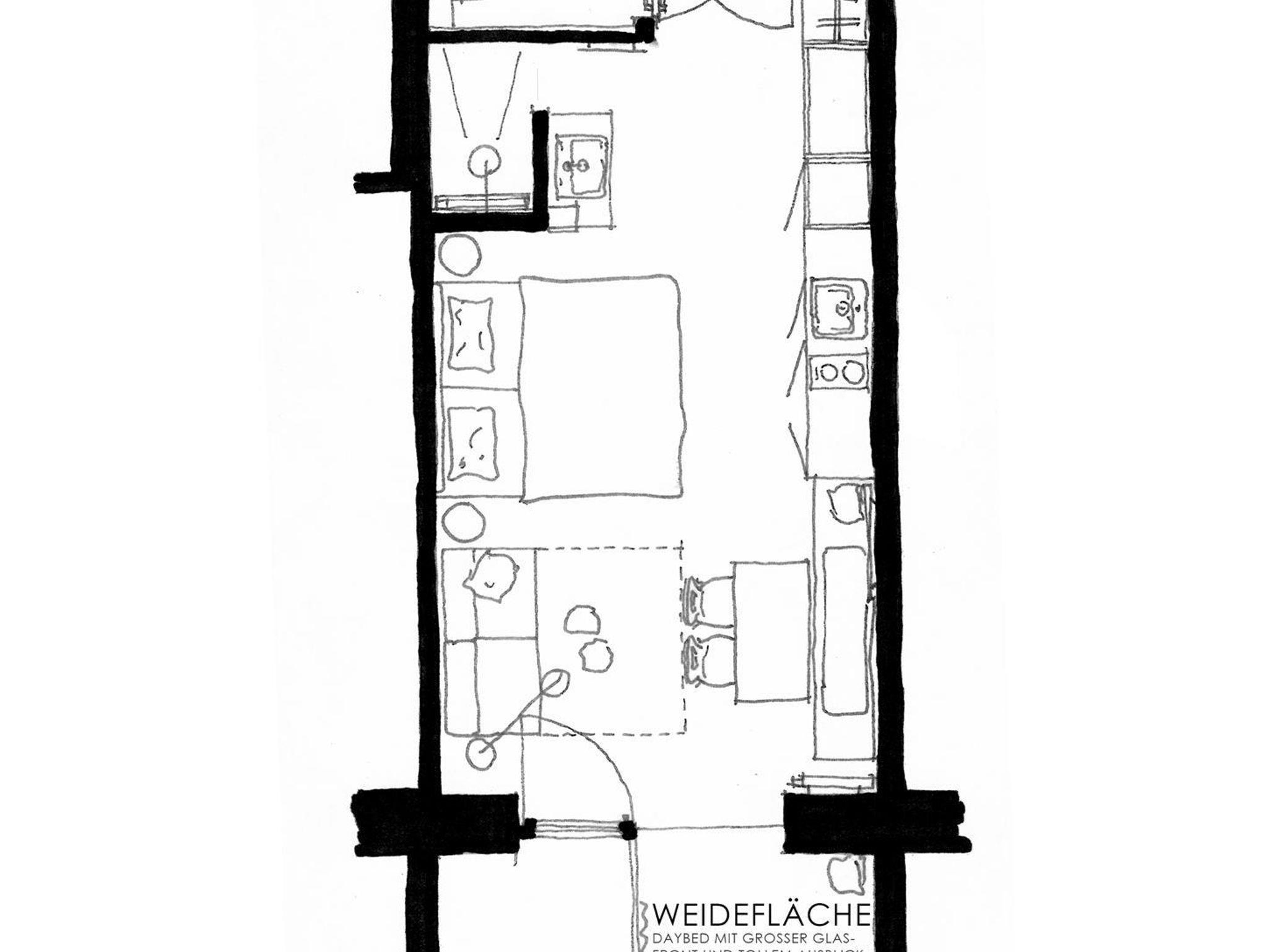 • Daybed „Weidefläche“ große gemütliche Liegefläche mit riesiger Glasfront & Pölster