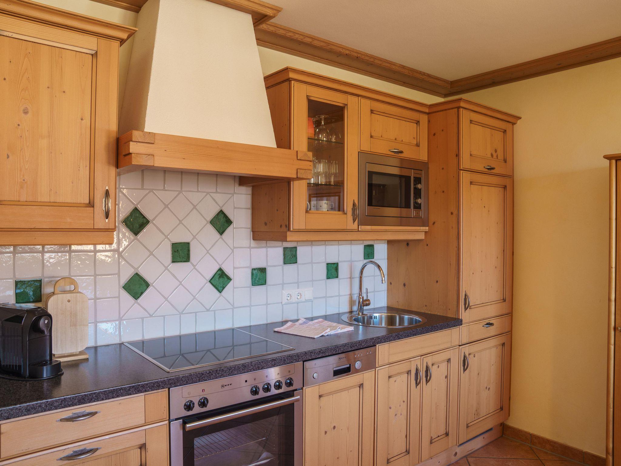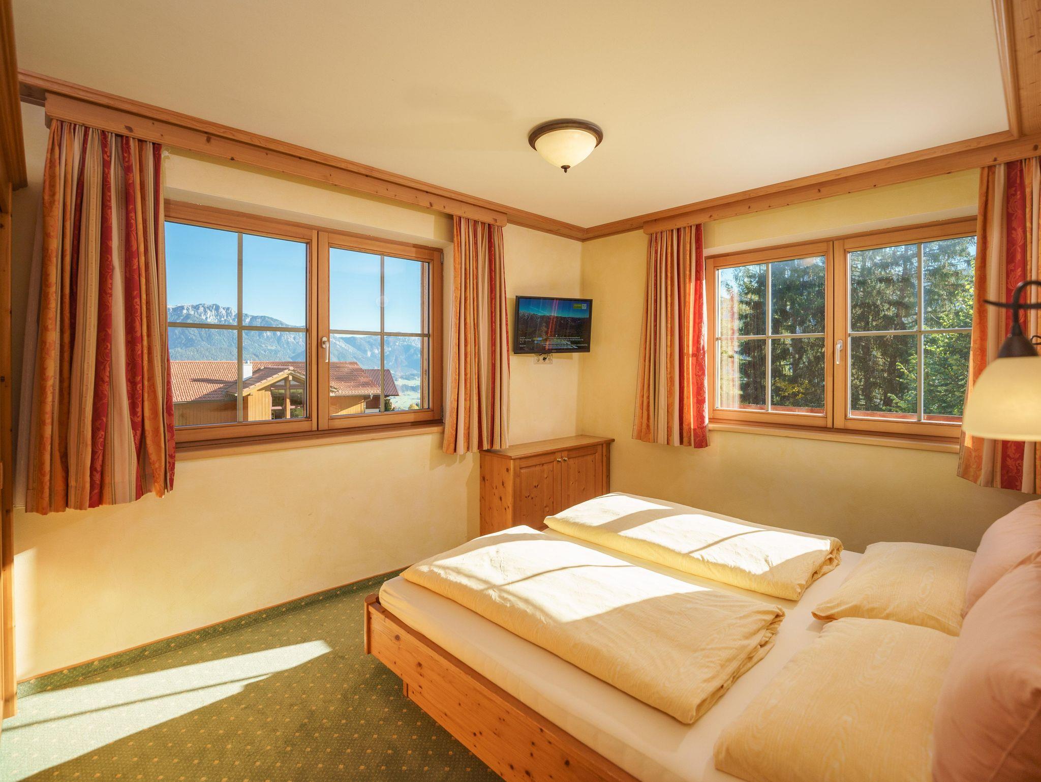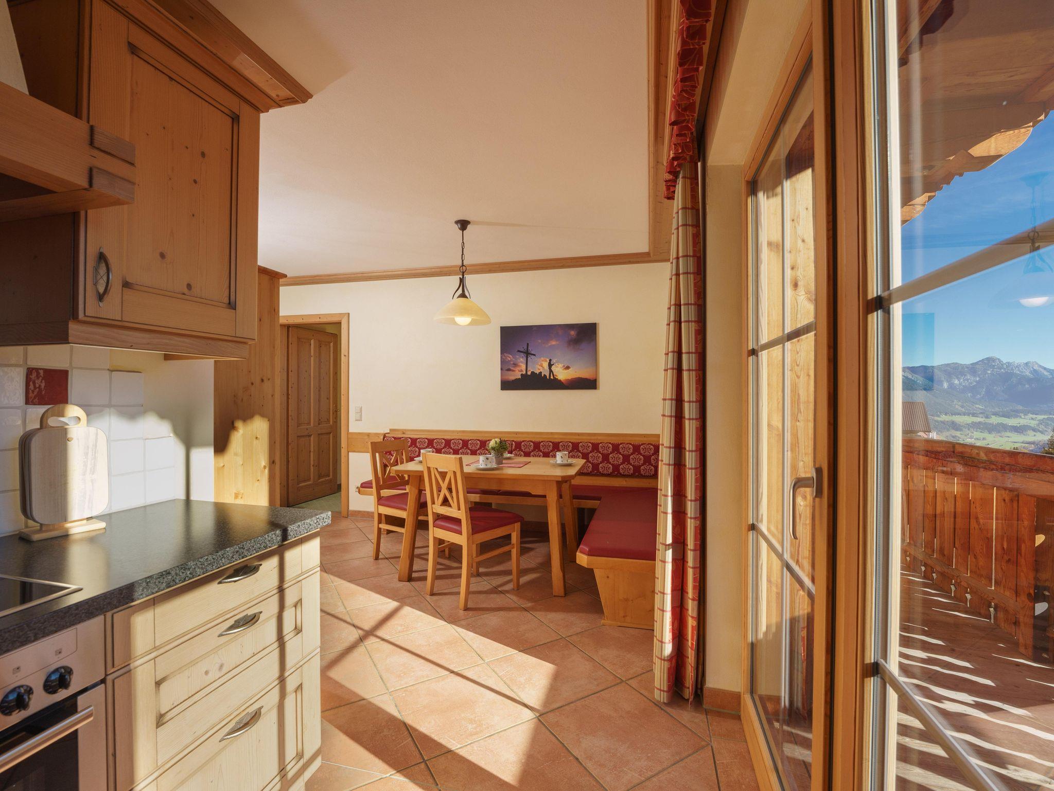 Im rustikalen Landhausstil eingerichtete Appartements mit 2 getrennten Schlafräumen, vollausgestattete Wohnküche, Dusche, separates WC und Balkon oder Terrasse.