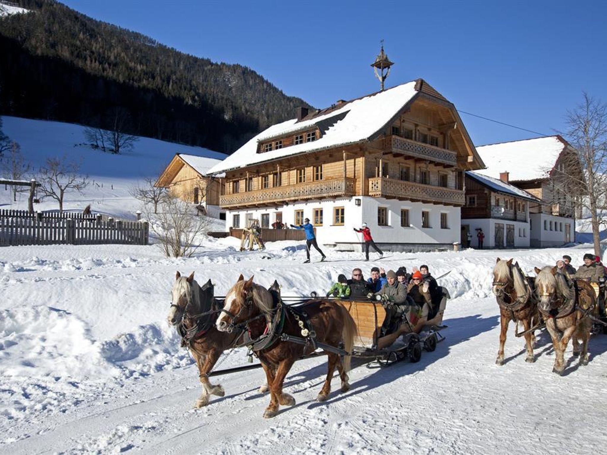 Im Winter sorgt unsere Lage am Fuße der Hochwurzen für traumhafte Momente im Schnee. Sie finden nur wenige Gehminuten von unserem Haus den Einstieg in die berühmte 4-Berge-Skischaukel, die Skispaß auf weltmeisterlich präparierten Pisten garantiert. Für Ihre Kleinen gibt es im Winter einen Kinderlift direkt beim Einstieg in die 4-Berge-Skischaugel, der auch ihnen ein tolles Skivergnügen ermöglicht. Auch bei Rodelbegeisterten wird mit der beleuchteten Rodelbahn der Hochwurzen, die auch nachts befahrbar ist, kein Wunsch offengelassen. Ein Besuch auf den zahlreichen Winterwanderwegen oder ein Ausflug auf unsere herrlichen Langlaufloipen lohnt sich natürlich ebenso.