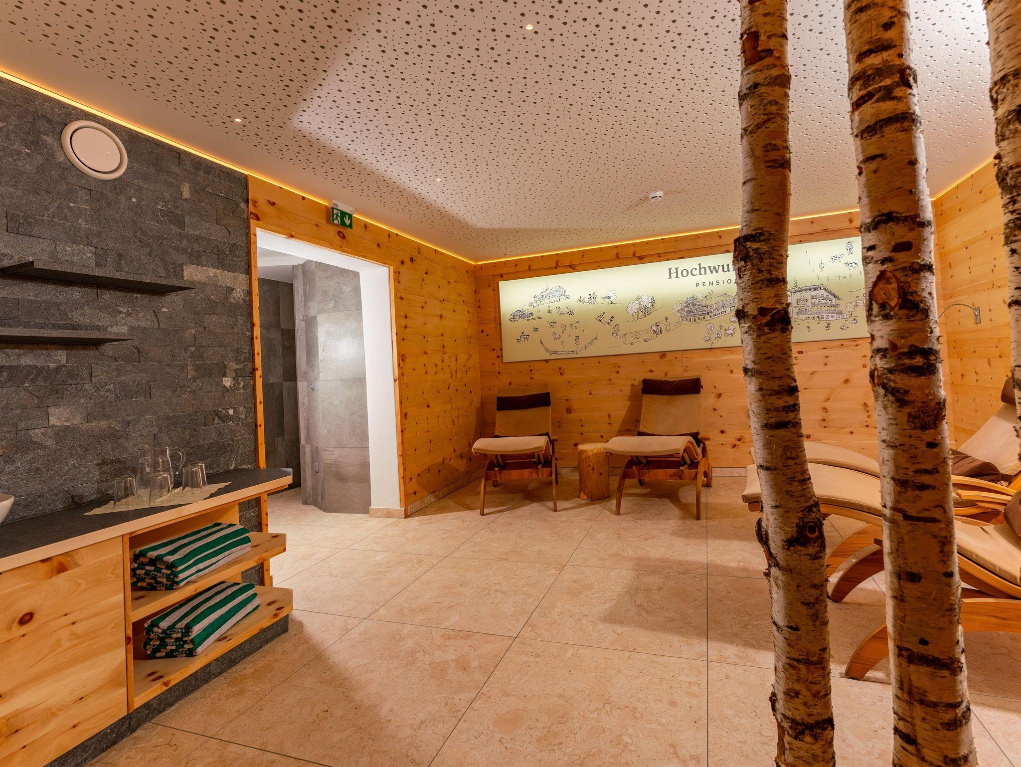 Um Ihnen eine sorgenfreie Zeit abseits vom Alltagsstress zu bieten, haben wir Ihnen einen Wellness-Bereich eingerichtet, der zum Schwitzen in der Sauna, zum Wohlfühlen in der Infrarotkabine oder unter der Wellnessdusche und zum Entspannen in unserem Ruheraum einlädt.