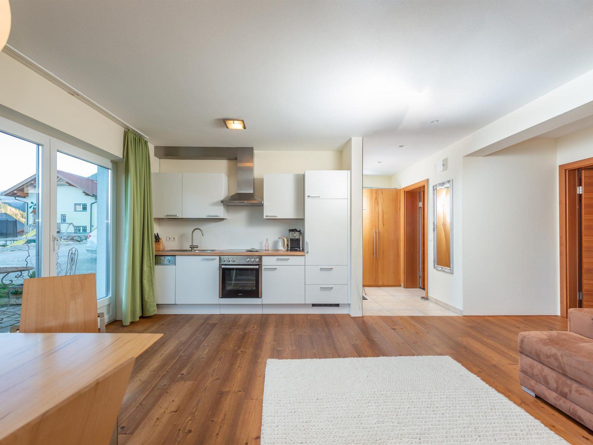 Genießen Sie unser neues Appartement für 2 - 4 Personen im modernen Holzstil auf 56 m². Ein freundliches Schlafzimmer mit Doppelbett, großzügiges Wohn-Esszimmer mit ausziehbarer Couch, vollständiger Küche, Eckbank, Bad mit separatem WC, Fön, Fussbodenheizung und Garderobe. Eigener Eingang mit Terrasse, Sat-TV und Internet mit WLAN-Anschluß erwarten Sie.