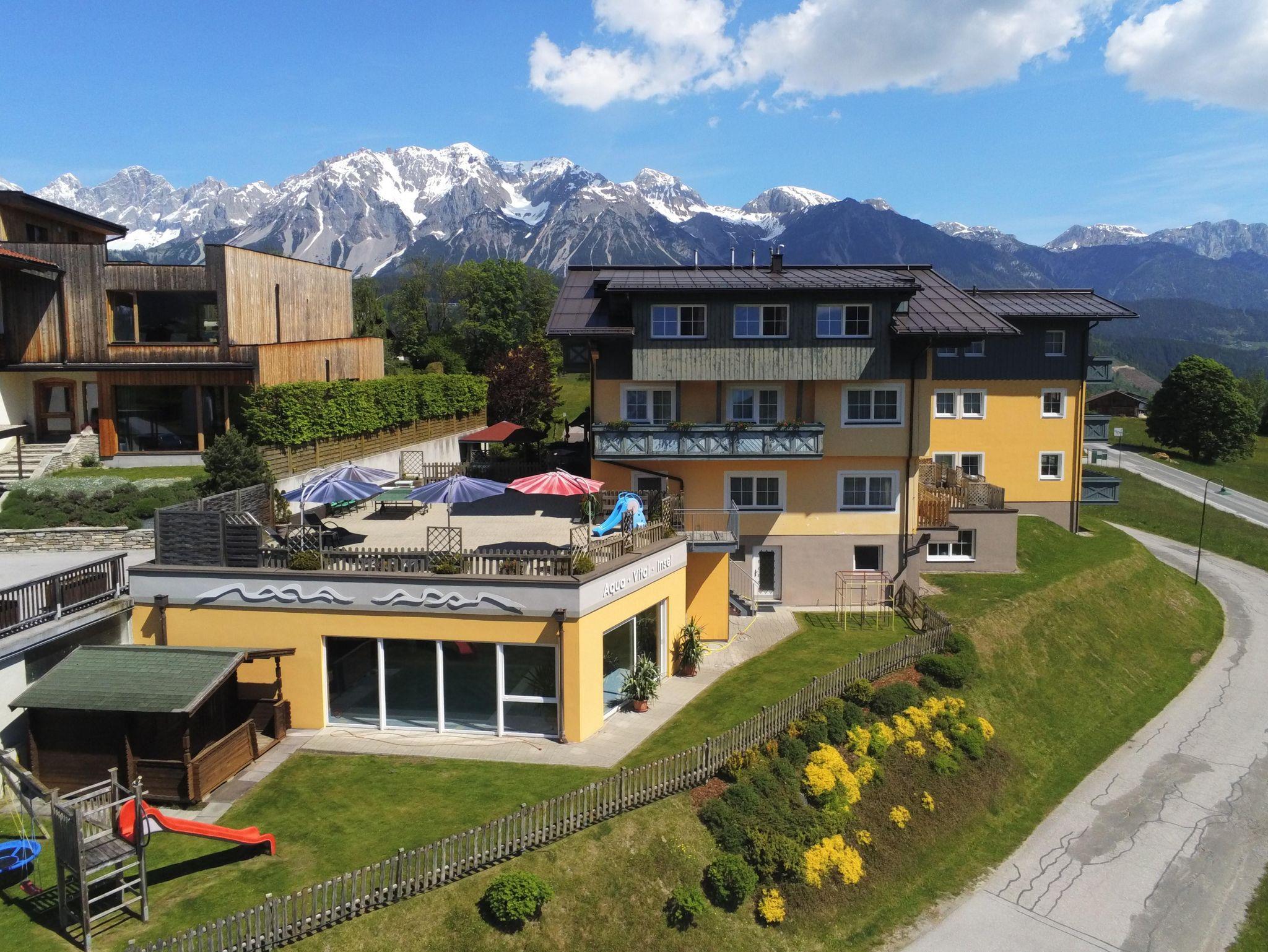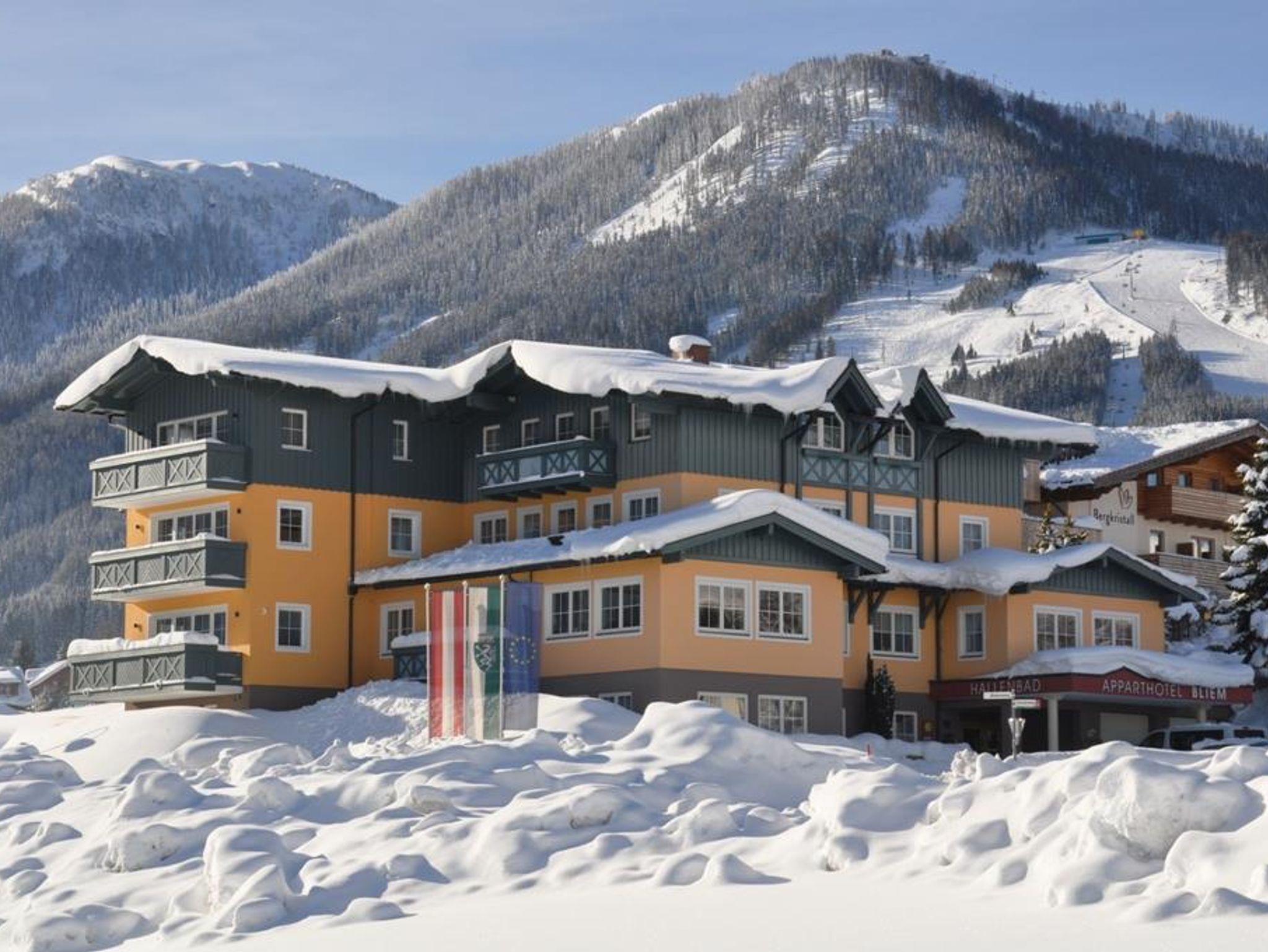 Wir heißen Sie herzlich Willkommen in unserem Apparthotel Ferienhaus Bliem in Rohrmoos in der erlebnisreichen Urlaubsdestination Schladming-Dachstein. Zentral gelegen bietet unser Apparthotel Ferienhaus Bliem den optimalen Ausgangspunkt für Ihren Sommer- und Winterurlaub mit Freunden und Familie. Lassen Sie Ihr Auto einfach stehen, denn in nur 5 Gehminuten erreichen Sie die Skipiste des Top Skigebiet 4-Berge-Skischaukel von Schladming und genießen bestens präparierte Pisten. Die Abfahrt bringt Sie bei ausreichender Schneelage wieder bis zur Haustür des Apparthotel Ferienhaus Bliem. Auch im Sommer starten Sie Ihre Ausflüge direkt von Ihrer Unterkunft mit dem ebenfalls nur 5 Gehminuten entfernten Wanderbus. Im Apparthotel Ferienhaus Bliem verbringen Sie Ihren Urlaub in gemütlichen Doppelzimmern oder in einer unserer 10 Ferienwohnungen, die ausreichend Platz für 2 bis 7 Personen bieten. Unser riesiger Kinderspielraum bietet viel Platz zum Toben und lässt Kinderherzen höher schlagen. Starten Sie einen aktiven Urlaubstag beim Wandern oder im Schneeparadies im Skigebiet 4-Berge-Skischaukel an unserem reichhaltigen Frühstücksbuffet. Auch Gäste der Ferienwohnung können auf Wunsch am Frühstücksbuffet so richtig schlemmen. Einmal pro Woche verwöhnen wir unsere Gäste auf der sonnigen Hotelterrasse mit saftigen Koteletts, herzhaftem Gemüse und knackigen Salaten. Zum Abschalten vom Alltag oder nach einem aktiven Urlaubstag in der Ferienregion Schladming-Dachstein entspannen Sie in unserem Wellnessbereich Aqua-Vital-Insel mit Sauna, Dampfbad, Infrarot-Wärmekabine und Indoor-Pool mit direktem Zugang ins Grüne. Im Sommer bieten wir für unsere Gäste geführte Wanderungen mit Wanderführer Wolfgang, auf denen Sie gemeinsam Themenweg oder sportliche Alpinwege in den Schladminger Tauern oder im imposanten Dachsteingebirge erkunden. Als staatlich geprüfte Tennislehrerin hilft Ihnen Elisabeth den richtigen Einstieg beim Tennis zu finden oder bei einem Match Ihr Spiel zu verbessern. Für Golftipps und Informationen zum Golf & Country Club Dachstein-Tauern sind Sie bei Christina bestens aufgehoben. Große und kleine Pferdesportbegeisterte können im benachbarten Angererhof Reitstunden nehmen und ihre Technik im Sattel verbessern. Auch für den Winterurlaub ist das Apparthotel Ferienhaus Bliem der optimale Startpunkt für Ihre Touren mit der Familie. Die Skischule befindet sich gleich direkt an Einstieg in die 4-Berge-Skischaukel von Schladming. Bei einer romantischen Pferdeschlittenfahrt erkunden Sie die Rohrmooser Täler Obertal und Untertal. Die Skibushaltestelle ist ebenfalls nur 5 Gehminuten entfernt und bringt Sie zum Rodeln und Skifahren auf die Hochwurzen. Wolfgang und Elisabeth Huber mit Tochter Christina freuen sich darauf, Sie im Apparthotel Ferienhaus Bliem in Rohrmoos bei Schladming zu begrüßen!