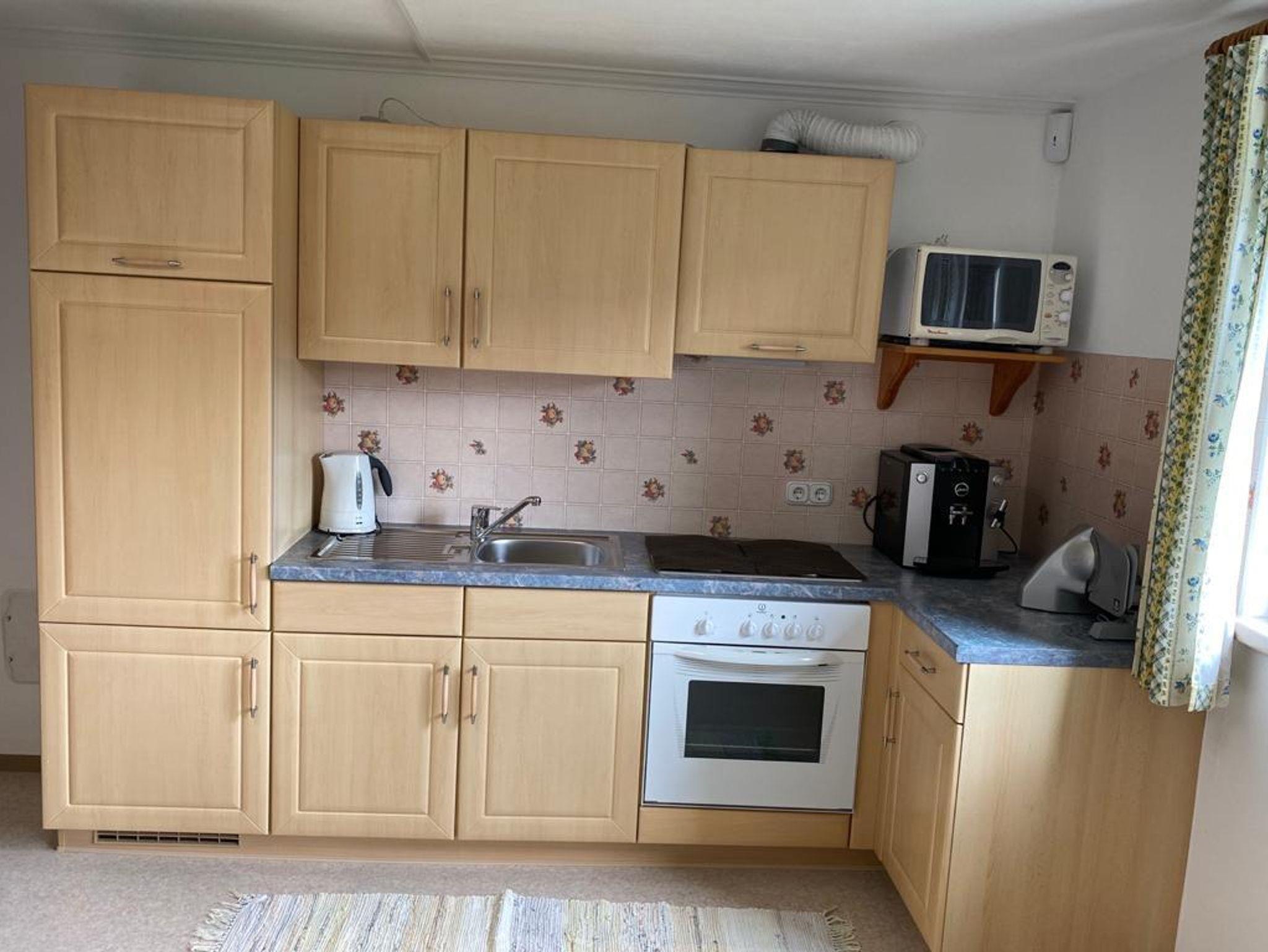 Das geräumige Apartment mit 60 m² verfügt über ein Schlafzimmer mit Doppelbett, großen Kleiderschrank, Kommode. Die Wohnküche ist mit einem Essbereich, gemütlichen Ecksofa (mit Schlaffunktion), NEU Kaminofen, Satelliten Flat-TV/Radio, gratis WLAN, Küchenblock mit Kühlschrank, Herd, Backrohr, Jura-Kaffeemaschine, Filtermaschine, Aufschnittmaschine, Toaster, Eier- und Wasserkocher, uvm. ausgestattet.
