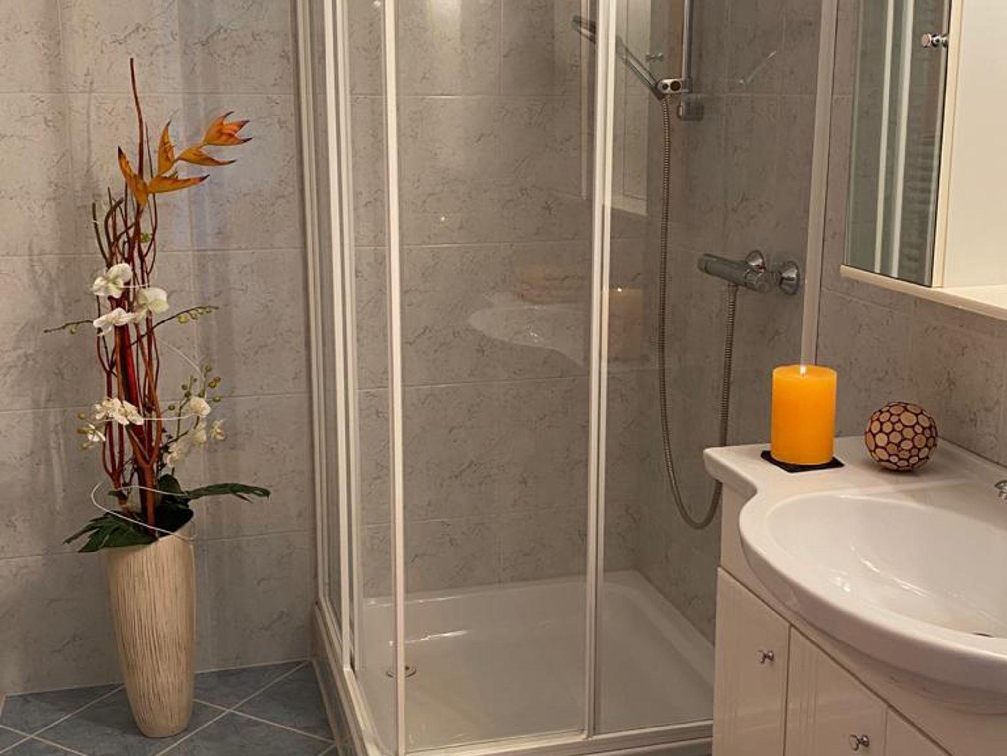 Im Eingangsbereich befindet sich ein großzügiger Vorraum mit Garderobe. Das Badezimmer ist mit Dusche, Waschbecken, Handtuchheizkörper von der Toilette getrennt ausgestattet.