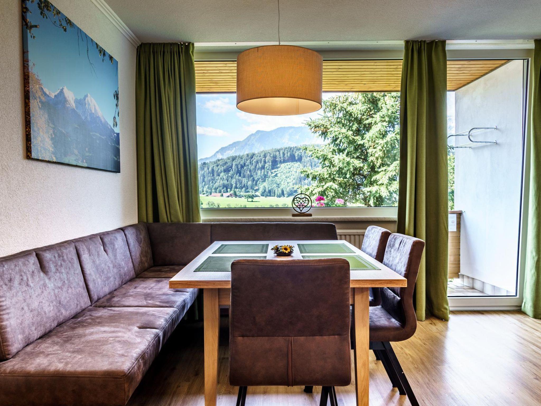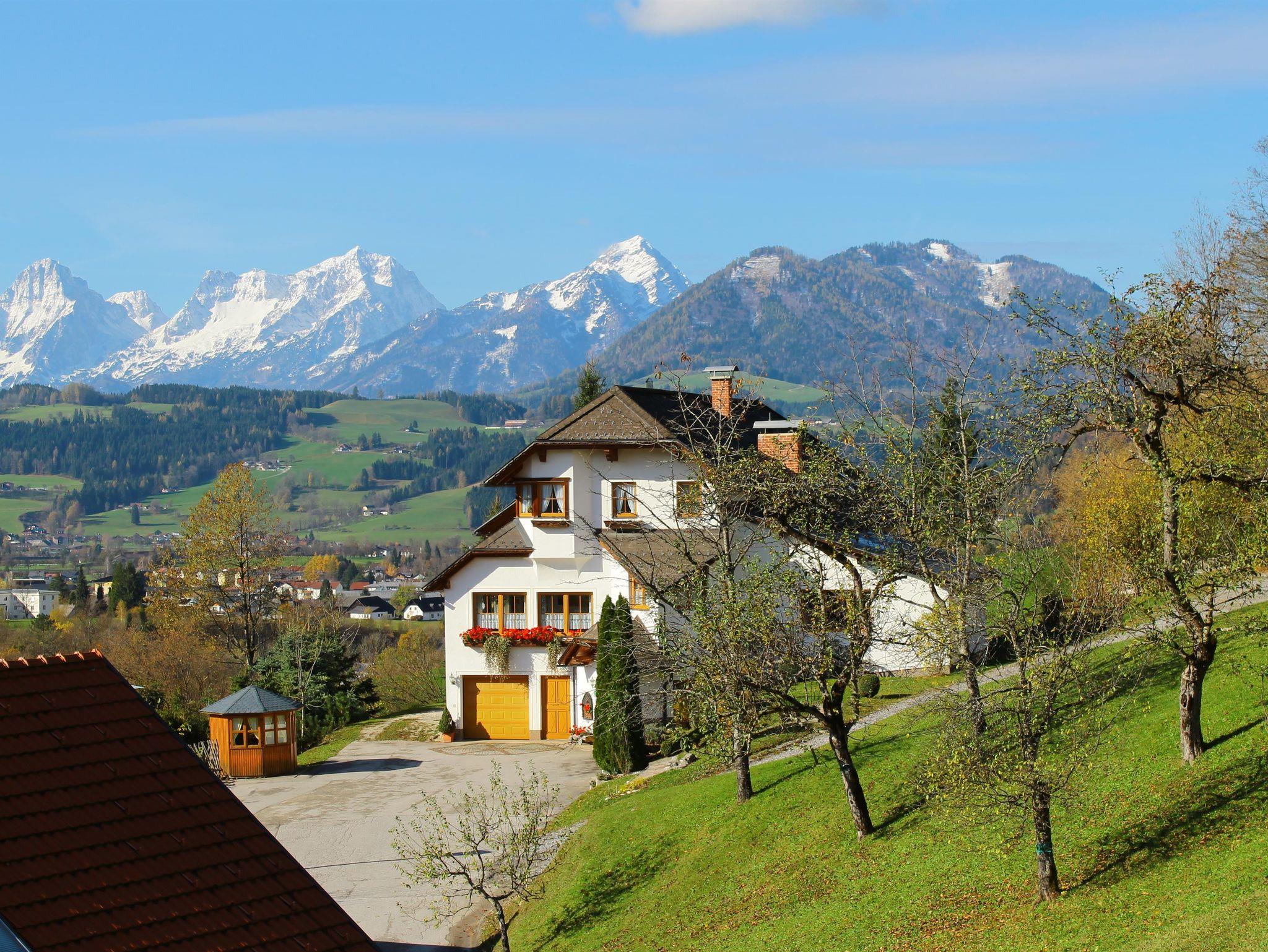 Neue gemütliche Ferienwohnung für 4 bis 5 Personen mit 2 getrennten Schlafzimmern im 1. Stock, 1 Wohnküche mit bequemer Sitzecke, 1 Badezimmer mit großer begehbarer Dusche, seperatem WC, großzügigem Waschtisch und Waschmaschine. Großer südseitiger Balkon mit herrlicher Aussicht auf die Berge der Pyhrn Priel Region.