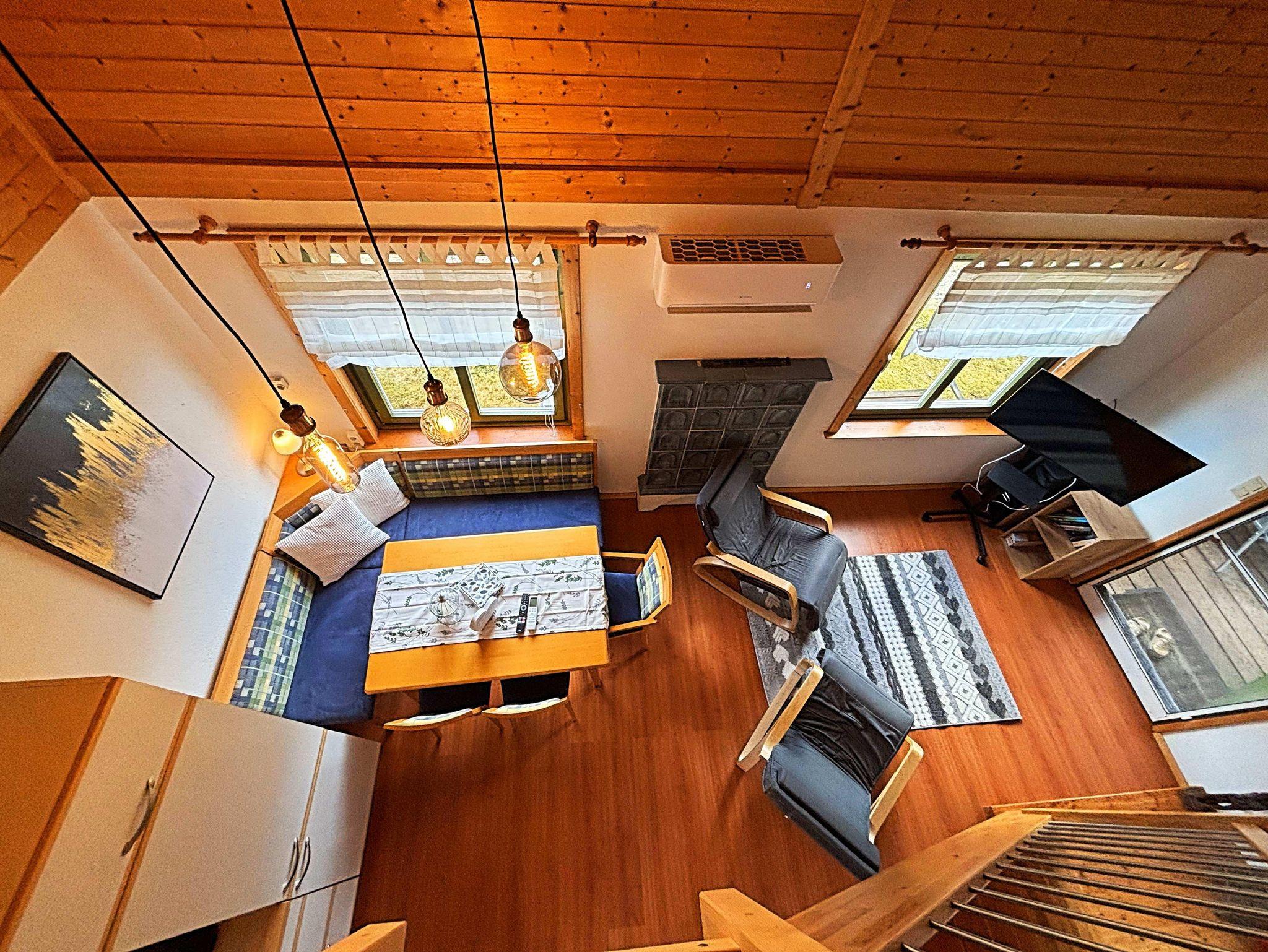 ist ein Holzblockhaus und wurde im Alpine-Style in den Farben: weiß, grau, blau, mit viel Holz und Liebe dekoriert und ausgestattet.