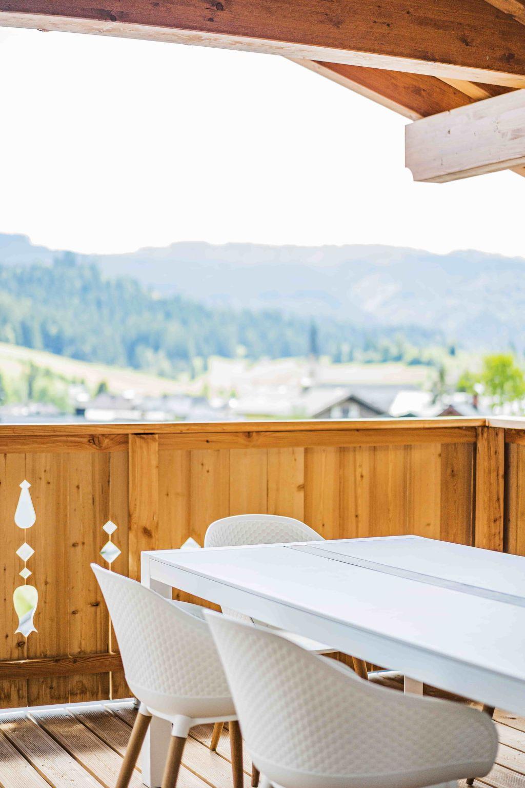 Outside, the inviting terrace is the perfect place to enjoy the peaceful surroundings and fresh mountain air. A perfect place to spend cosy hours outdoors, be it with a morning coffee or a relaxing evening drink. This quiet corner is guaranteed to enrich your stay.