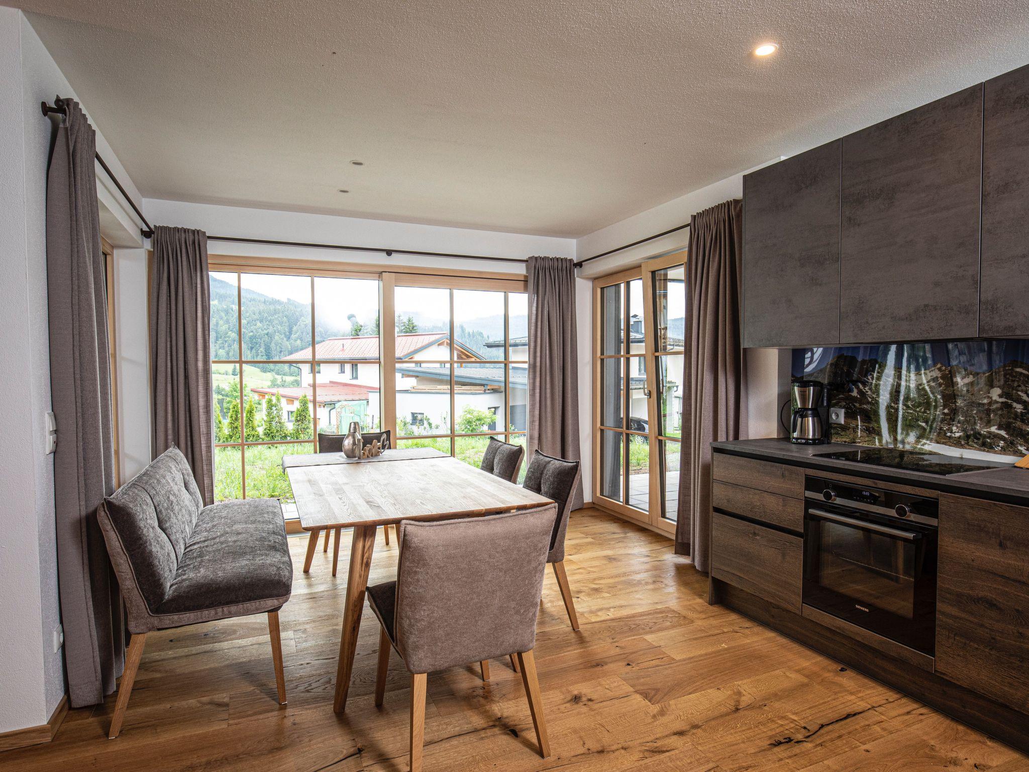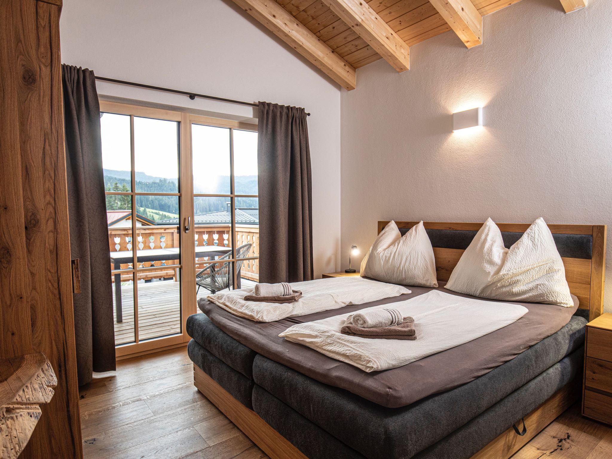 Our brand new Dachstein Chalet is located in a quiet and sunny residential area, directly adjacent to spacious grassland areas and with a magnificent view of mountains, green meadows, forests and in winter directly on the ski slope. The distance to the ski lift is around 900 metres. The village centre is around 350 metres away. In the winter season, the free shuttle bus to the lift stops right in front of the house and takes our guests to the lift and back.