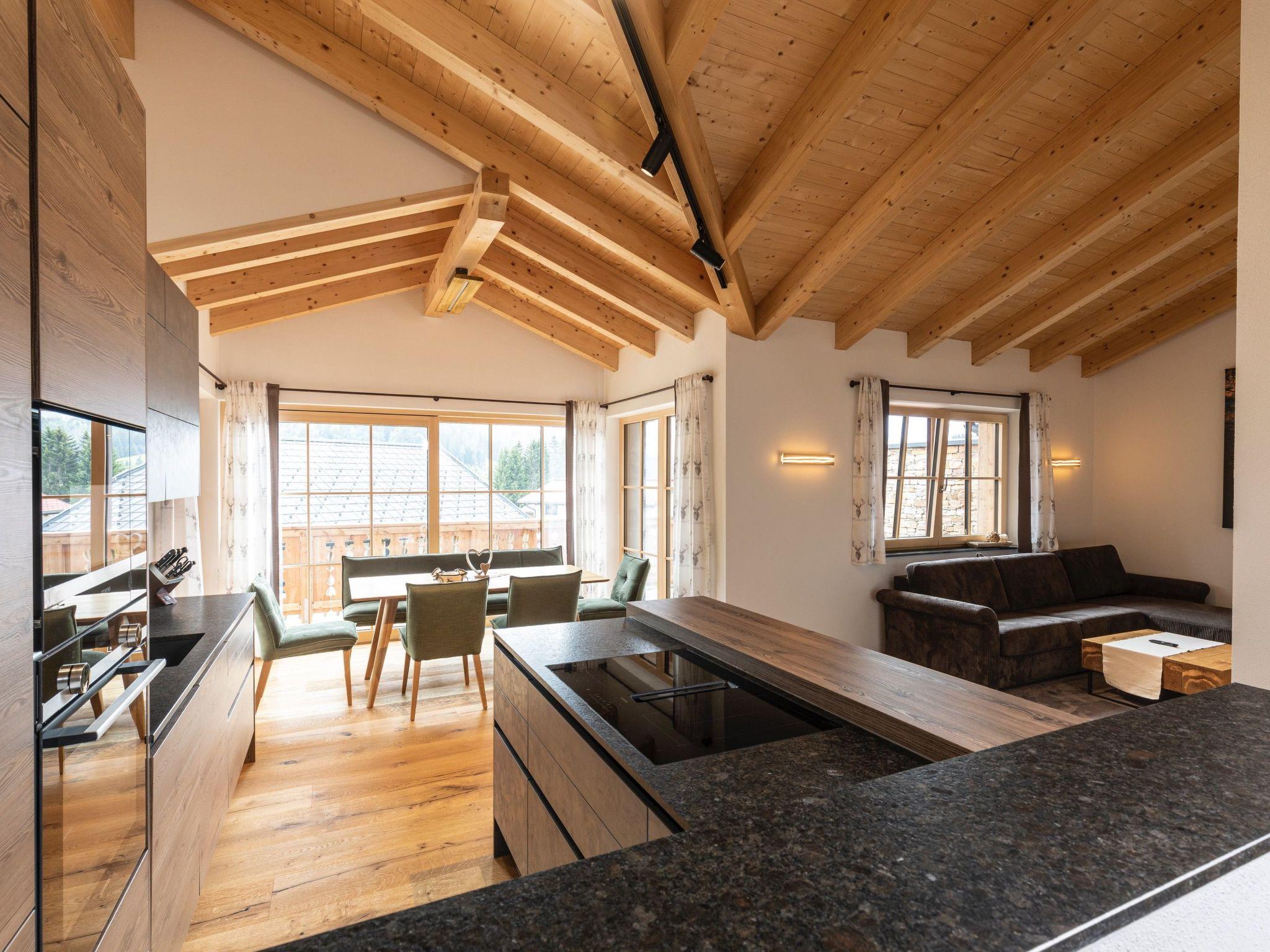 Our brand new Dachstein Chalet is located in a quiet and sunny residential area, directly adjacent to spacious grassland areas and with a magnificent view of mountains, green meadows, forests and in winter directly on the ski slope. The distance to the ski lift is around 900 metres. The village centre is around 350 metres away. In the winter season, the free shuttle bus to the lift stops right in front of the house and takes our guests to the lift and back.