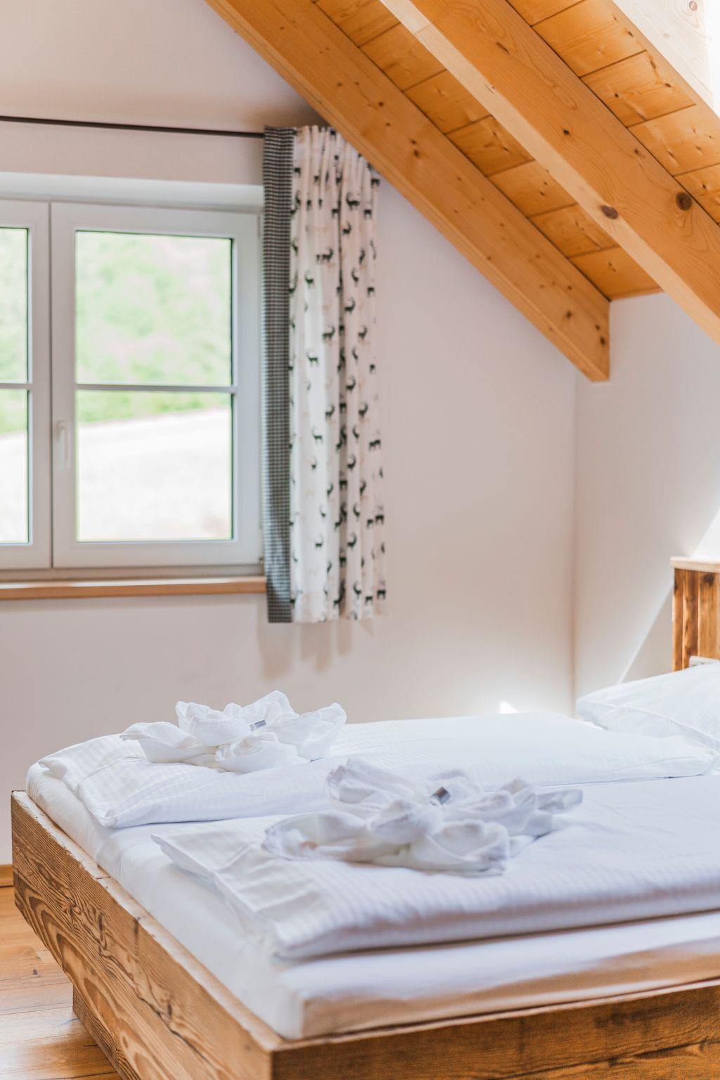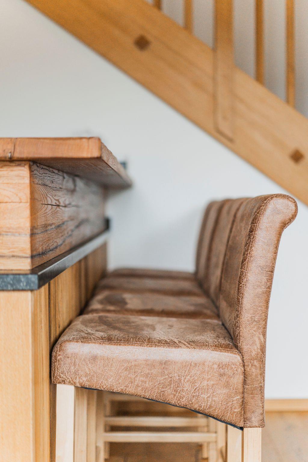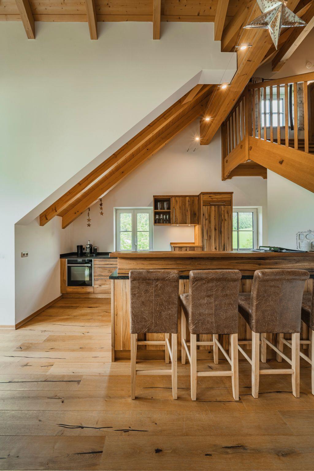 The penthouse holiday flat "Oberweiglhof" offers a top location in the middle of the Dachstein West ski area, a luxurious ambience with high-quality furnishings, state-of-the-art equipment and a rustic cosiness, with this accommodation you will always keep your holiday in good memory!!! The Oberweiglhof is a 350-year-old farmhouse, which was converted into six flats a few years ago with great effort and attention to detail. Architecturally, it was built according to the centuries-old Salzkammergut style and it was built largely in organic timber construction.the penthouse flat "Oberweiglhof" now offered for tourist rental will inspire you. With around 125 m2 of usable living space, it is not only very spacious but also extremely high quality and cosy. In addition, there is a balcony where you can enjoy your breakfast outdoors with a wonderful view of the mountains and meadows, as well as a carport for your cherished car and the lockable storage room right next to the carport, where you can store your skis, sledges or bikes. For your skis there is also a ski room with boot dryer in the house and with the guest card you will also receive a locker for 6 people in the lift building where you can store your skis, ski boots etc.. The flat itself not only impresses with its magnificent view, but also with its unique interior design. The exposed roof truss means that all the structural timbers are visible from the inside, giving the flat a special flair, and the living area consists of a great eat-in kitchen with dining area in the veranda and a large gallery area, which has been furnished with an extremely cosy Italian designer leather couch and a TV area. In addition to the sleeping area in the gallery, there are two extremely cosy bedrooms, one of which has access to the balcony and the other has its own bathroom with shower and free-standing bathtub, and since we want to offer you an unforgettable holiday, we have not skimped on the furnishings and equipment. All the furniture was made from solid wood by a Tyrolean company specialising in reclaimed wood. The bedroom furniture is made of sunburnt old wood or solid old wooden beams. The kitchen, on the other hand, was made from solid old oak and fitted with very expensive, high-quality appliances. Cookware from WMF, cutting knives from Zwilling, crockery and glasses from Ritzenhoff, Nespresso coffee machine with milk frother and much more is ready for you.