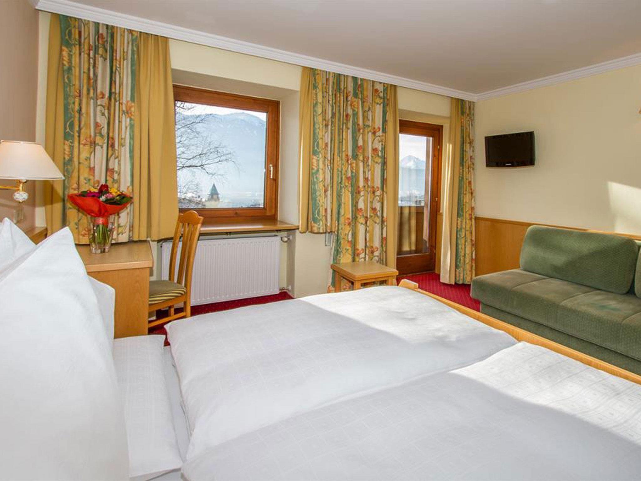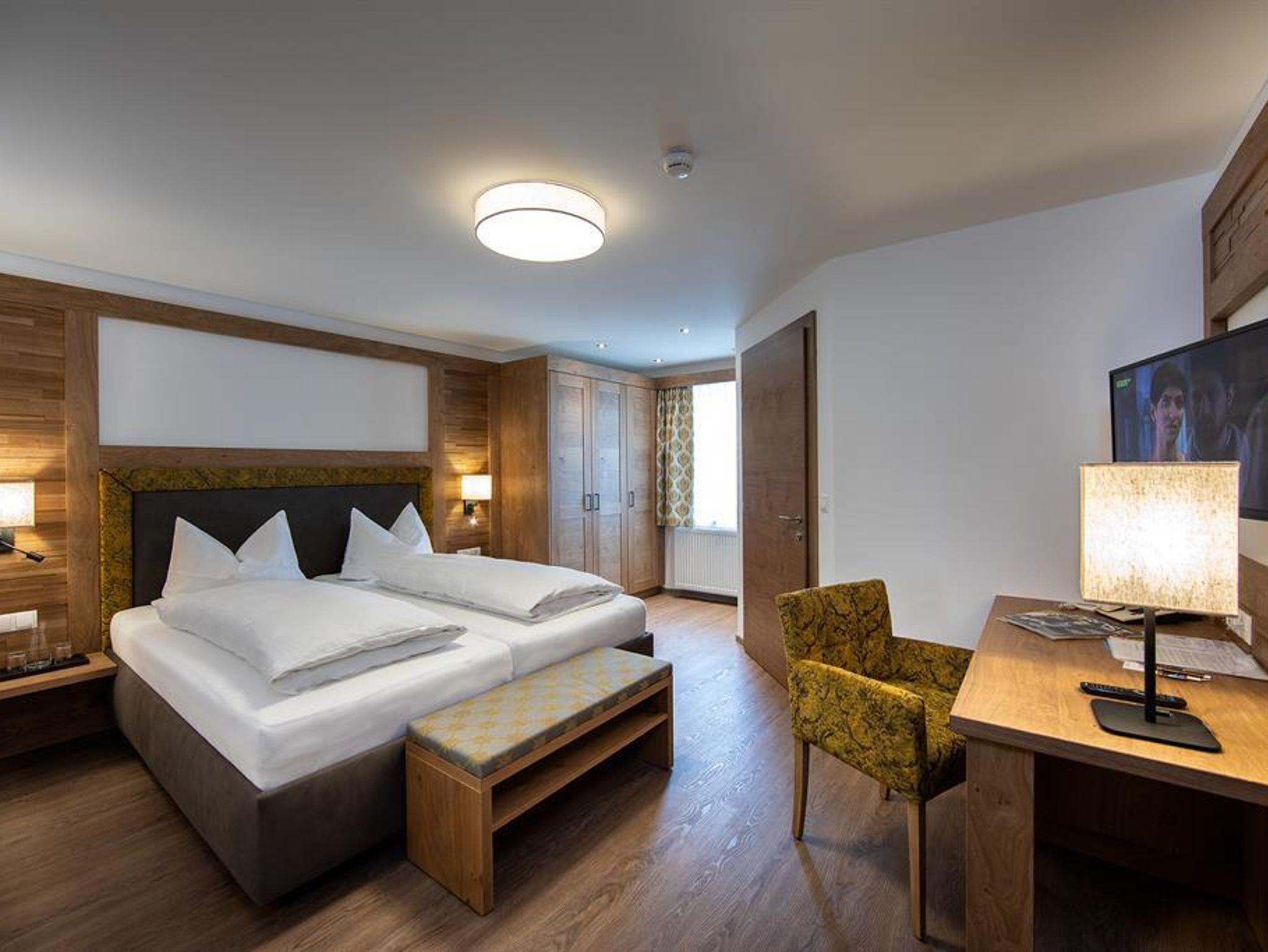 Die neu gestalteten Businesszimmer bieten auf 25m² eine angenehme Atmosphäre zum Wohlfühlen. Modern, aber dennoch im Tiroler Landhausstil eingerichtet, sind die Zimmer mit einem Arbeitstisch, Telefon, SAT-TV und Safe ausgestattet. Badezimmer mit DU/WC und Föhn.