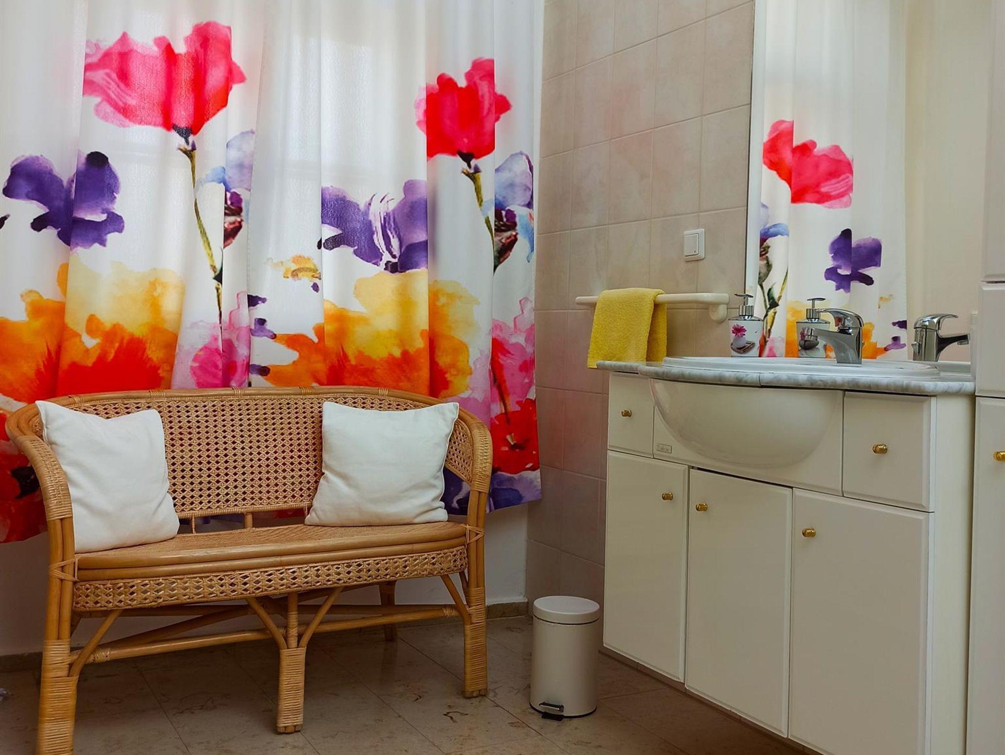 1 Doppelbett, Schlafsofer zum ausziehen, 55m², Couch und Fernseher, Kleiderschrank - Küche mit Einbauherd, Mikrowelle, Kaffeemaschine, Wasserkocher, Toaster, Kühlschrank und Spüle sowie sämtiches Geschirr - Sitzgelegenheit für 4 Personen - großes Bad mit Dusche, Waschbecken und WC