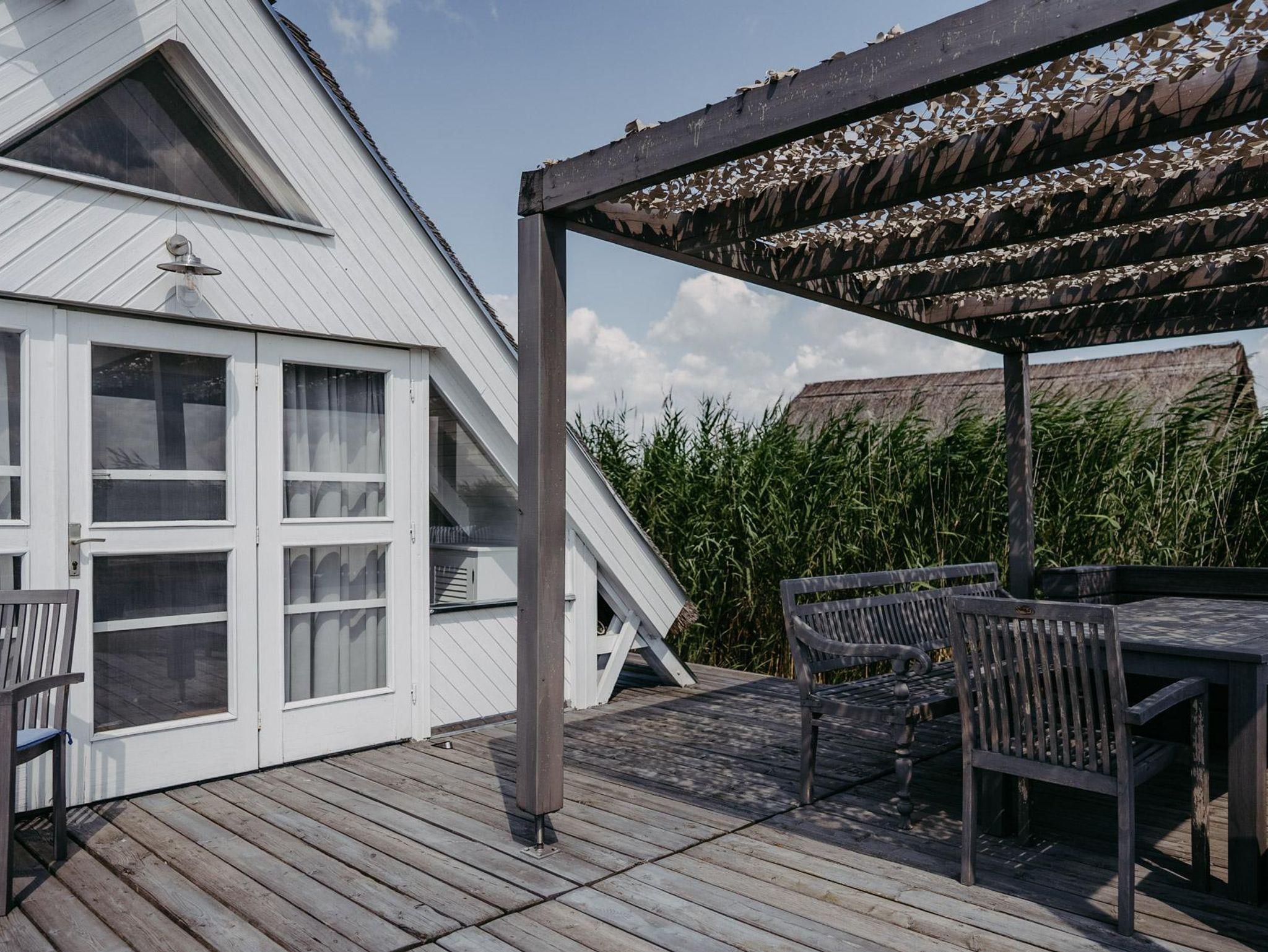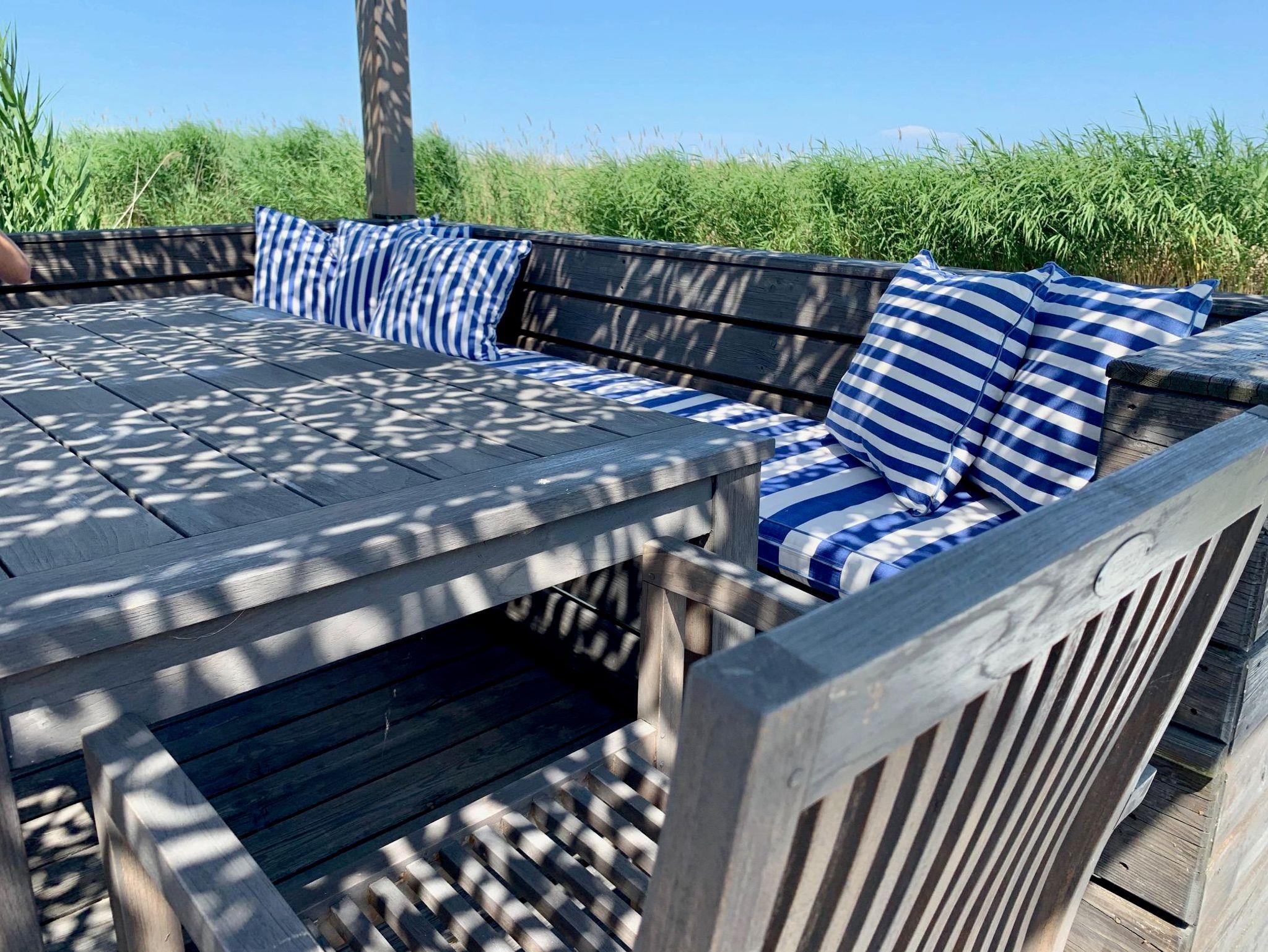 Vor der Seehütte kann man schwimmen. Der gesamte Neusiedlersee ist aber nicht sehr tief. Ein großes Sonnendeck mit gepolsterten Auflagen lädt zum Sonnenbaden und Entspannen ein. Neben dem Esstisch in der Hütte haben Sie auch Draußen auf der Terrasse einen großen Esstisch mit gemütlicher Eckbank. Die Hütte liegt mitten im Naturschutzgebiet und ist von Wasser und Schilf umgeben. Der Neusiedlersee und die Ruster Altstadt gehören zum UNESCO Weltkulturerbe. Damit misst die UNESCO der Kulturlandschaft Neusiedler See einen außergewöhnlichen Wert für die gesamte Menschheit bei.