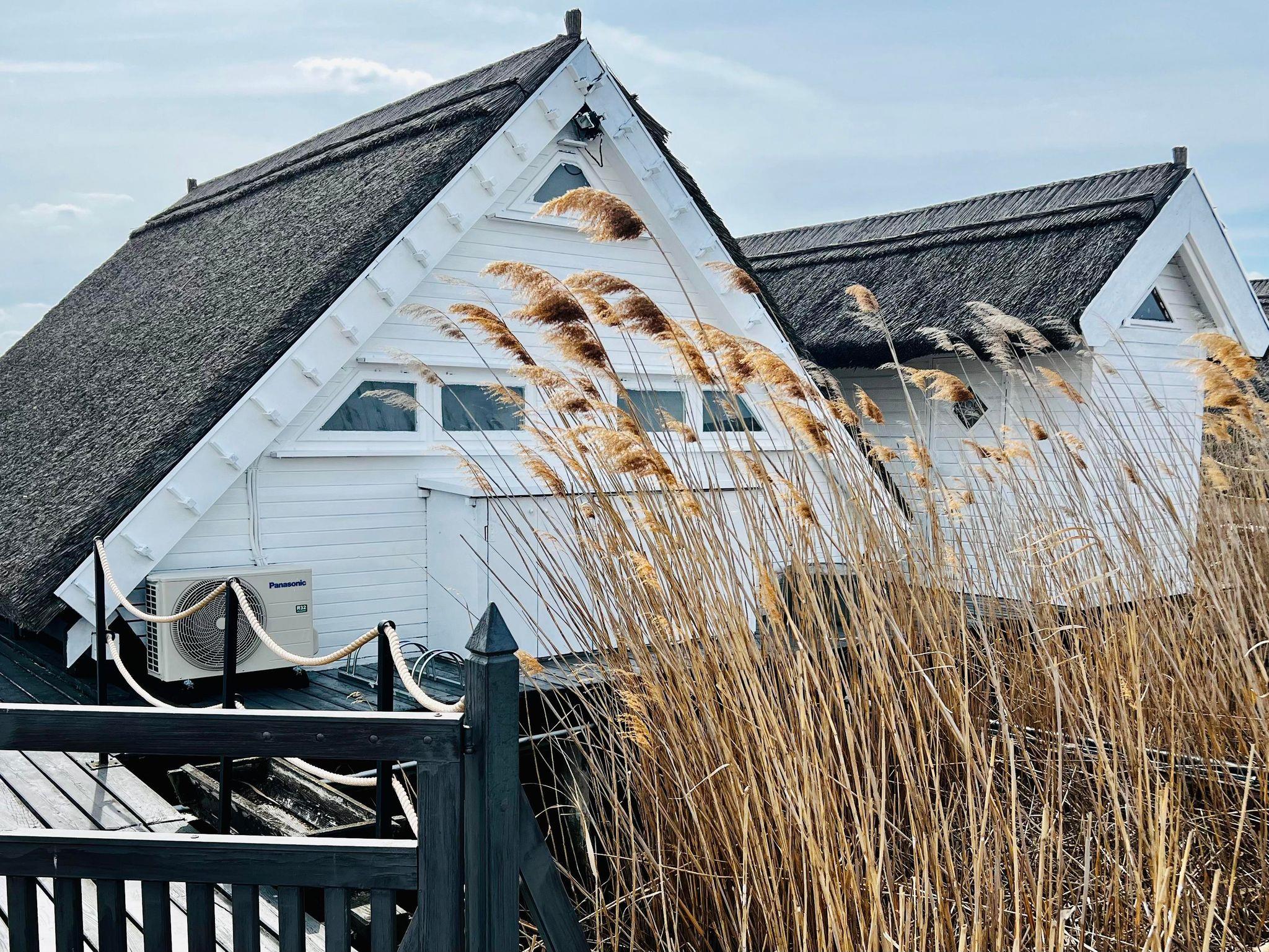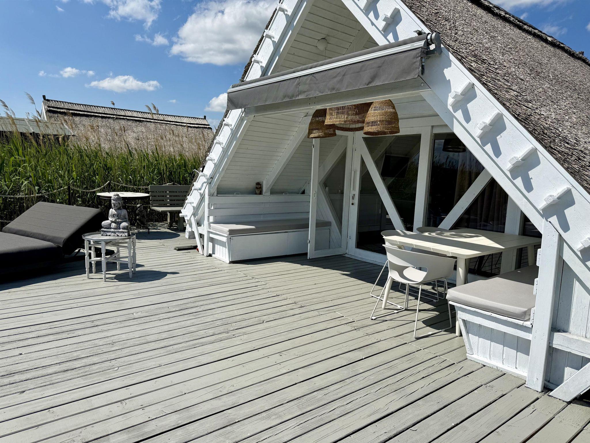 Sonneninsel, private Terrasse im Schilf mit Blick auf den See und Boot für Ihren Aufenthalt