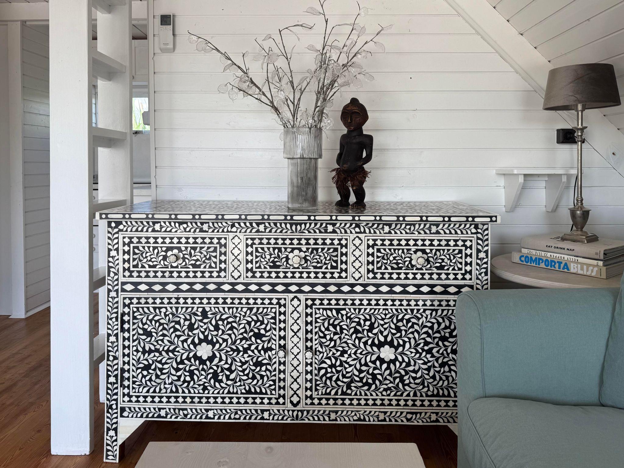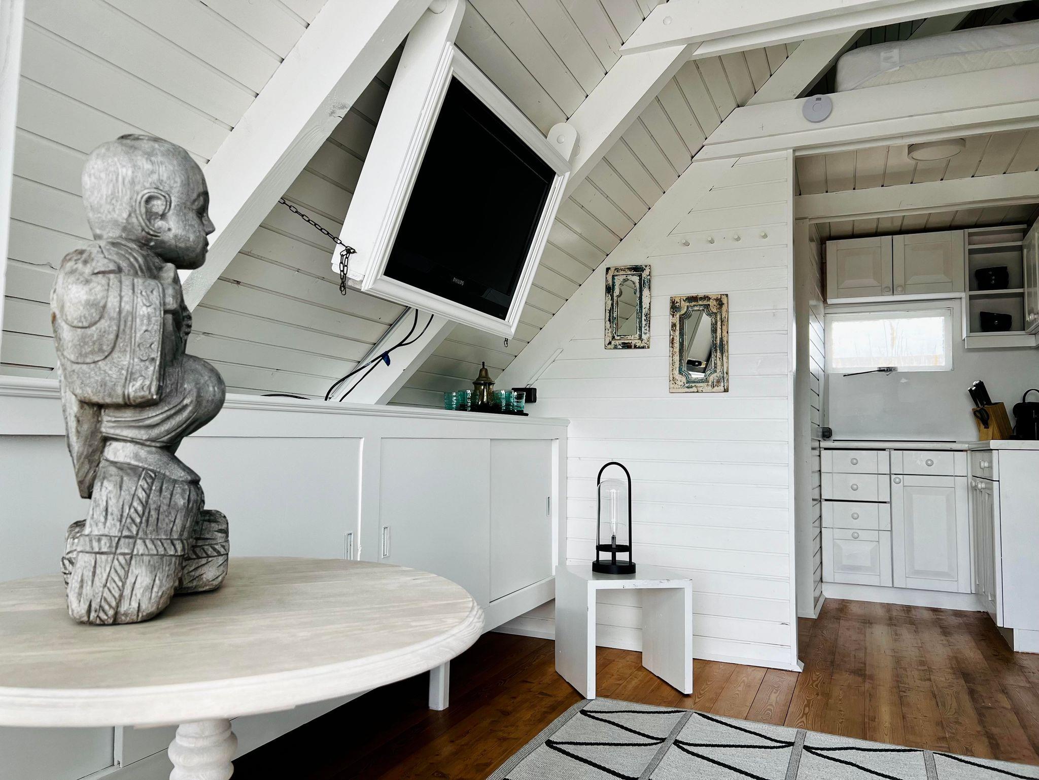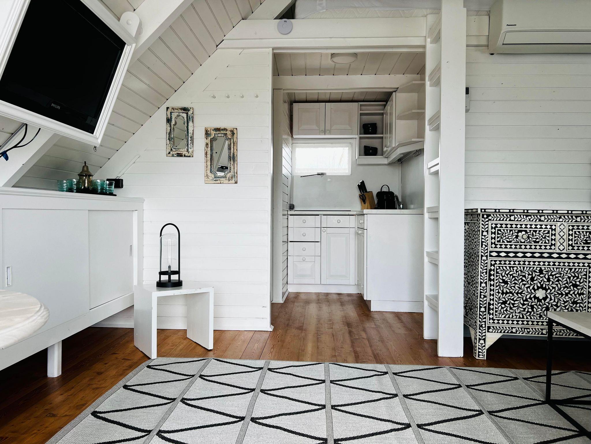 Klimaanlage für Kühlen und Heizen, eine kleine Küche, Geschirrspülmaschine, Kühlschrank und eine Nespresso Maschine sind vorhanden. WC mit Waschbecken befinden sich in der Hütte. Das Badezimmer befindet sich in einem Nebenhaus. Bitte beachten Sie, dass das Leben in einer Seehütte trotz allem, eher an einen Segel oder Camping Urlaub erinnert und das Platzangebot in der Hütte recht beschränkt ist.