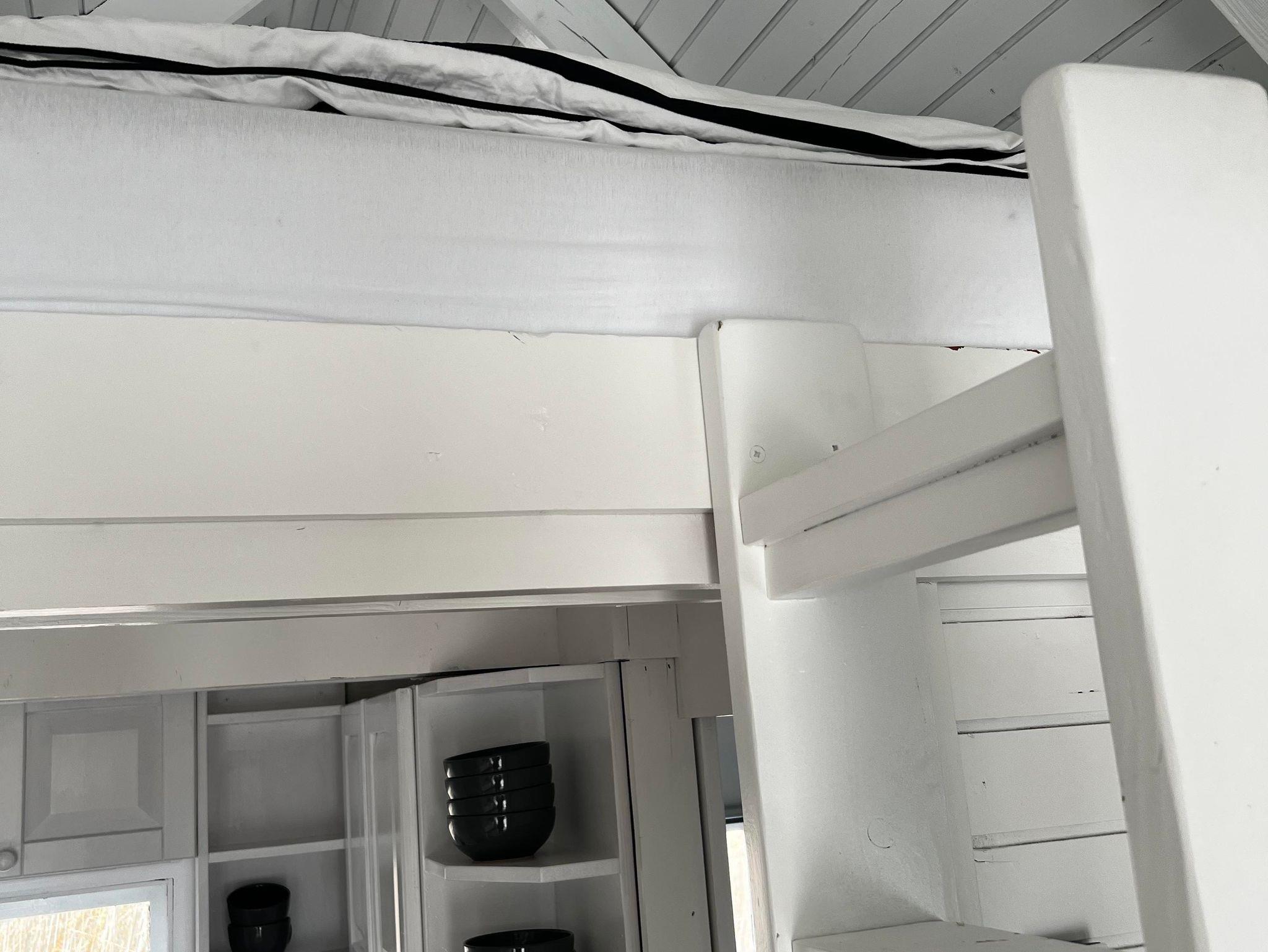 Das Ferienhaus Seehaus hat ein ebenerdiges, getrenntes Schlafzimmer mit einem Doppelbett. Das andere Doppelbett (mit Matratzen, aus Platzgründen gibt es kein komplettes Bett mit Beinen und Bett Haupt) befinden sich romantisch direkt unter dem Dach der Hütte und ist über eine Leiter zu erreichen. Zusätzlich kann als 5. Bett die Bank im Erdgeschoss zu einem Bett umfunktioniert werden. Die Betten im oberen Bereich sind für Personen mit eingeschränkter Beweglichkeit nicht zu empfehlen.