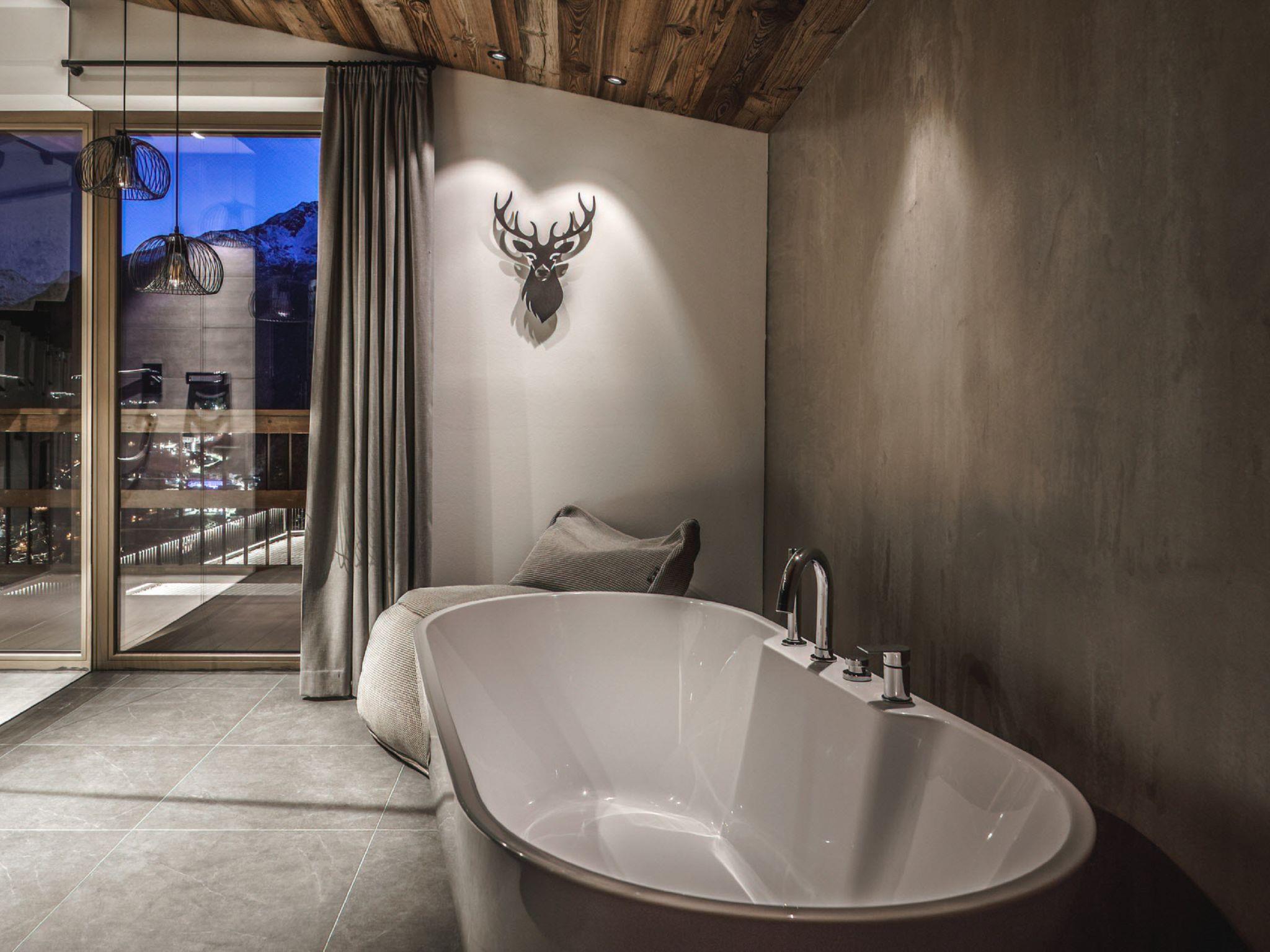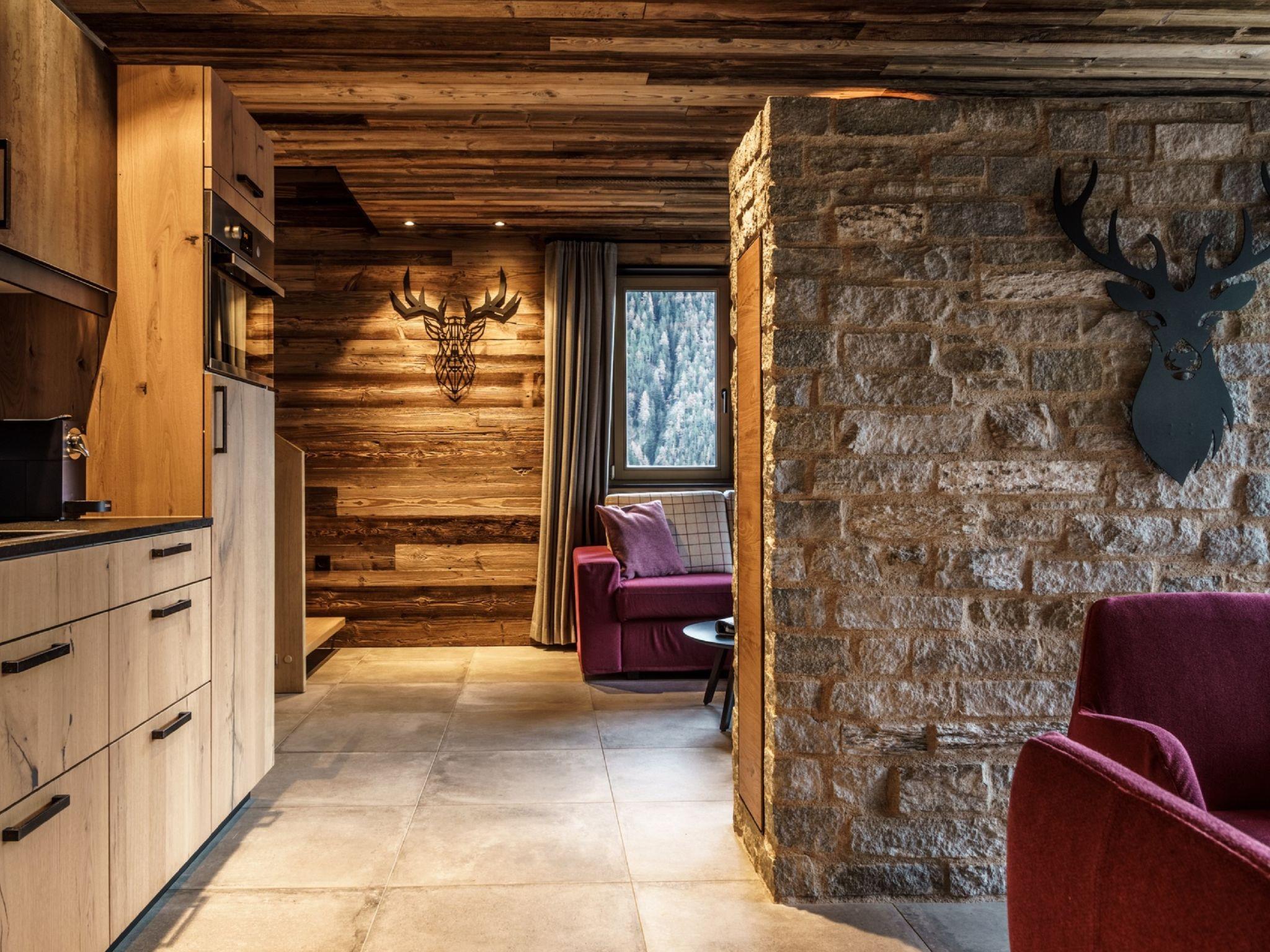 "Jagd - Chalet", 4-room chalet 115 m2 on 2 levels. Very modern and wooden furniture furnishings: entrance hall. 1 double bedroom with shower/WC and satellite TV (flat screen). Large kitchen-/living room (oven, dishwasher, 4 ceramic glass hob hotplates, freezer, electric coffee machine) with dining nook and satellite TV (flat screen). Exit to the terrace. Upper floor: 1 room with 1 bed, 1 double bed and satellite TV (flat screen). Bath/shower/WC, double hand-basin. Large terrace. Balcony furniture, deck chairs. Marvellous panoramic view of the mountains and the resort. Facilities: sauna, hair dryer. Internet (WiFi, free). Please note: maximum 1 pet/ dog allowed. Smoke alarm. The infrared cabin and bath tub are in the bathroom on the 1st floor. Others use this bathroom trough the separate balcony access. When there are less than the maximum number of guests staying at the property, not all of the housing units will be available for use.
