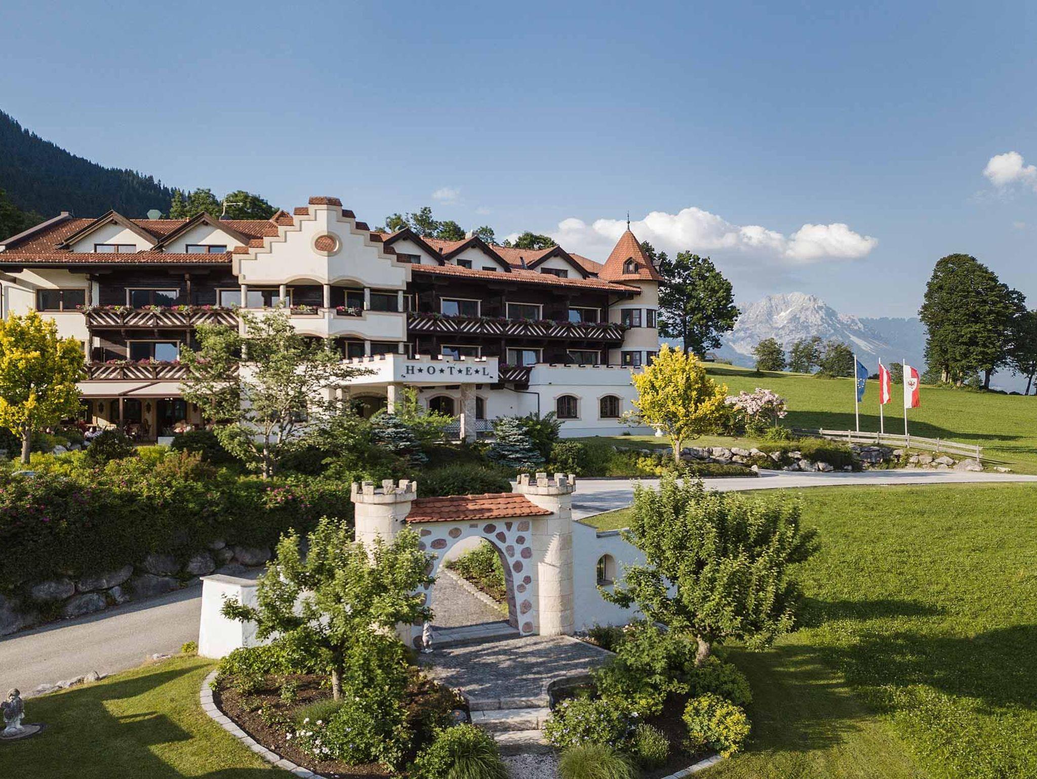 Mitten im Grünen und fernab der großen Sta¨dte liegt das Hotel AlpenSchlössl auf einer malerischen Hochebene in So¨ll am Wilden Kaiser in Tirol. Umgeben von unberu¨hrter Natur und umrahmt von sonnenbeschienener Landschaft und stillen Wa¨ldern ist unser familiengefu¨hrtes 4-Sterne-Hotel ein Refugium der Ruhe inmitten der Tiroler Bergwelt.