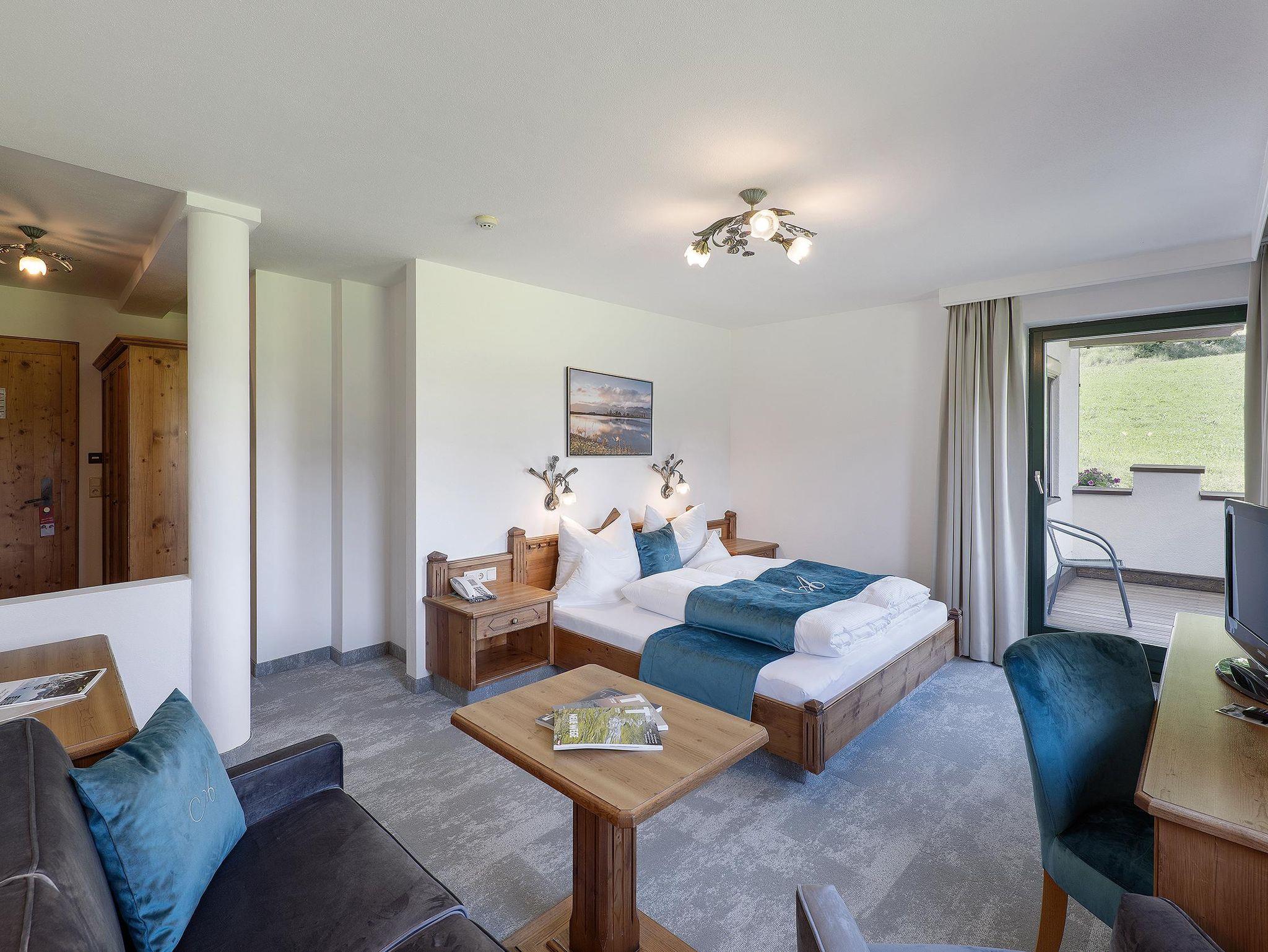 Von unserem südseitig ausgerichteten Zimmer genießen Sie Ruhe und den bezaubernden Blick auf Tirols Aussichtsberg - die Hohe Salve sowie den Schlösslgarten. Lassen Sie den Alltag hinter sich und entspannen Sie in Ihrem gemütlichen Familienzimmer.