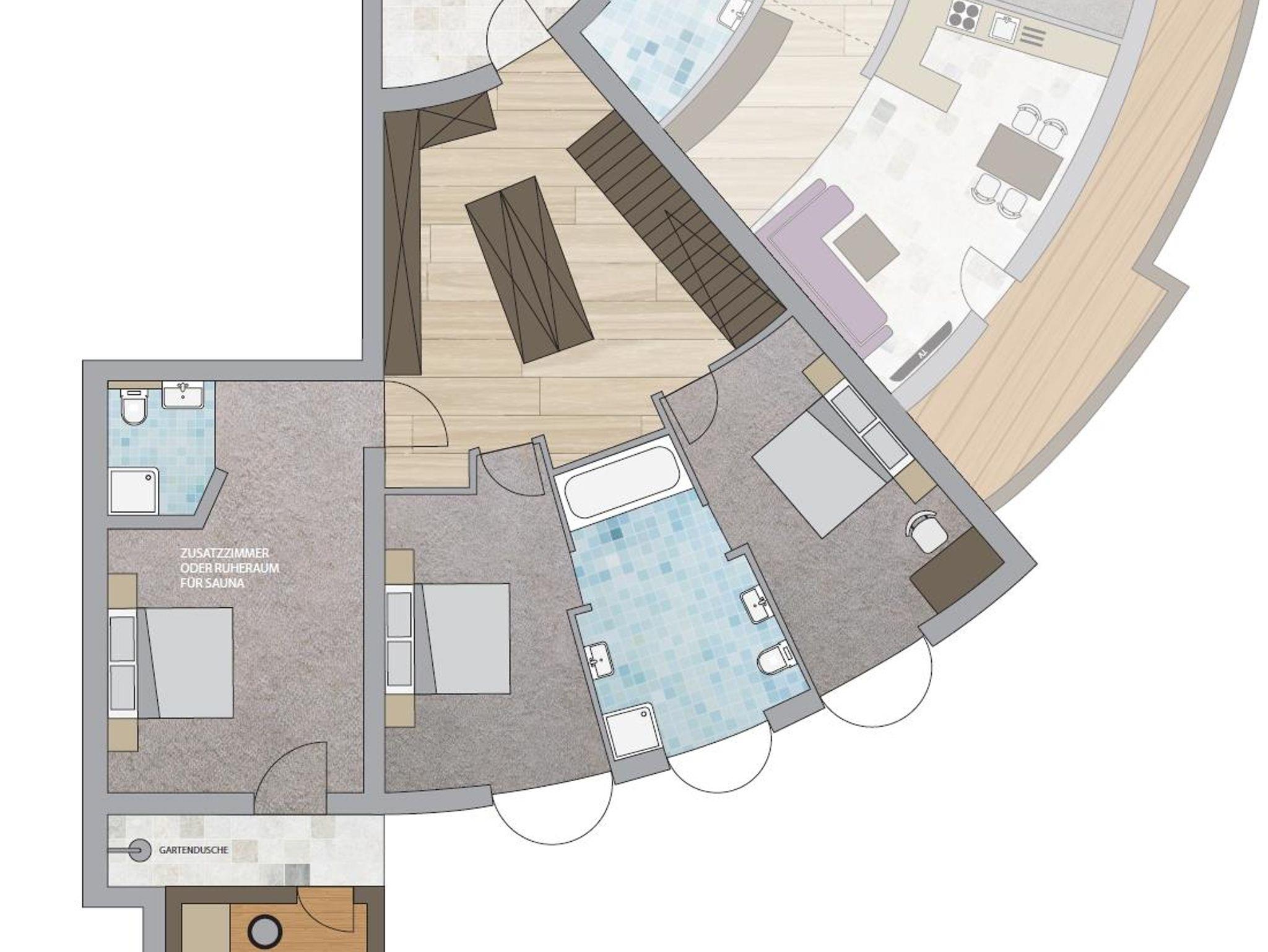 Um das Haus finden Sie einen großzügig angelegten Garten mit Sonnenliegen, Grillmöglichkeiten und Kinderspielplatz, der allen Bewohnern vom Kaiser Chalet und der Kaiser Suite zugänglich ist. Eine finnische Panorama Garten-Sauna und der gemütliche Ruheraum warten außerdem auf Sie (nur bei Buchung Kaiser Chalet), im Sommer auf Anfrage. Hier in unserem Ferienhaus in Söll sind auch Hunde jederzeit herzlich willkommen.