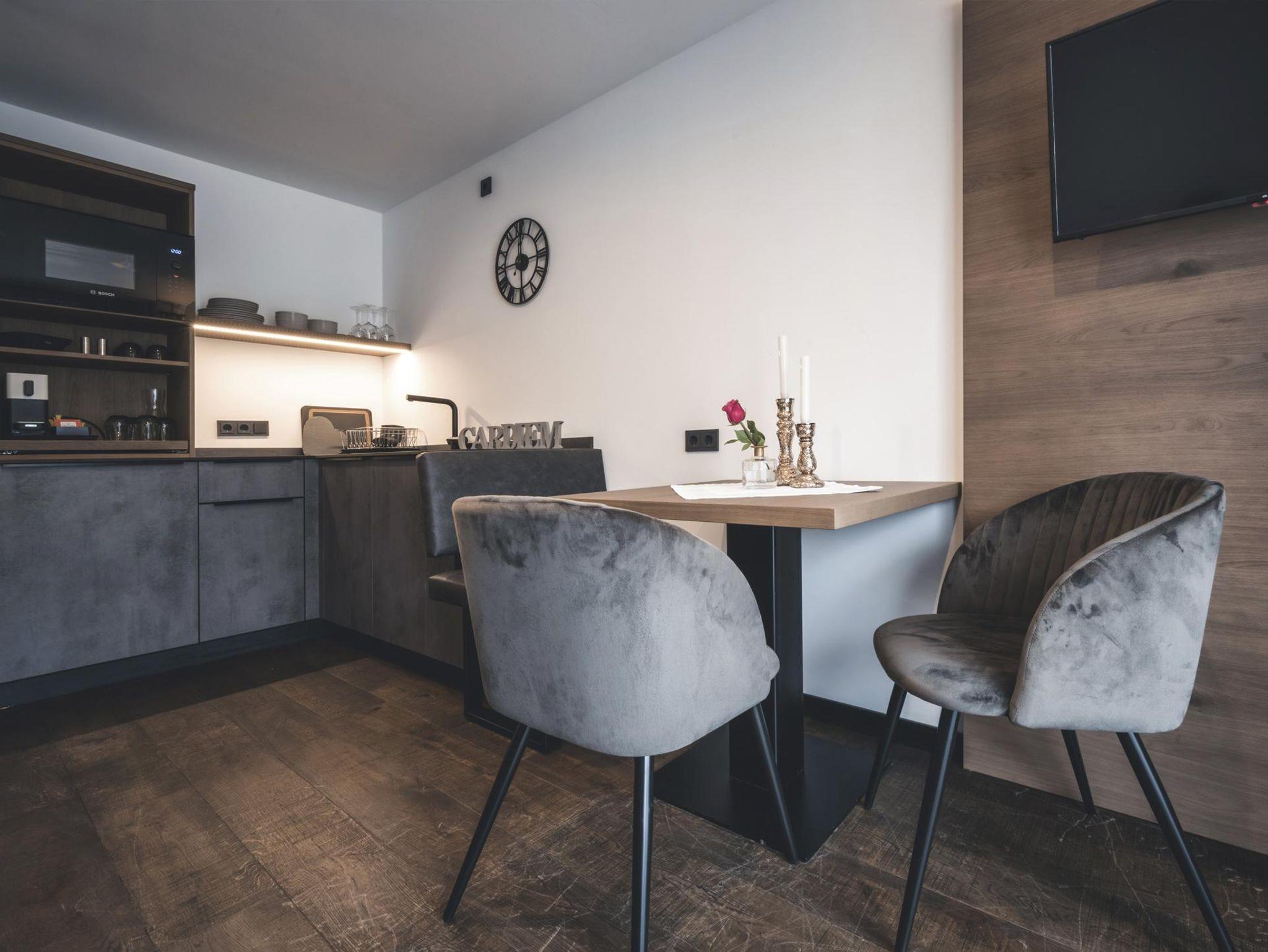 Traditionelles vermischt mit persönlichem Flair bieten wir geräumige, gemütliche Appartements mit Doppelbett, Wohnküche mit Küchenzeile und Schlafcouch, Flatscreen-TV und W-Lan.