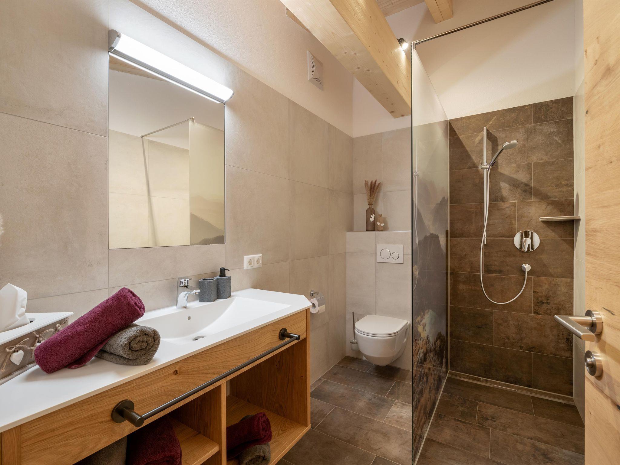 Am Hof angekommen, befinden sich vorgesehene Parkplätze neben dem Eingangsbereich zu unseren Apartments. Wo ein geräumiger verschließbarer Skiraum mit Skischuhtrockner, Garderobe Skihalterungen und Bankerl zu finden ist. Dieser auch im Sommer für Wanderschuhe, Fahrräder, E Bike zum Laden und versperren möglich ist. Im Eingangsbereich im Erdgeschoss erwarten Sie Infomaterialien aller Art in einem alten Kasten. Ein WC und der Eingang zu unserem Lift.