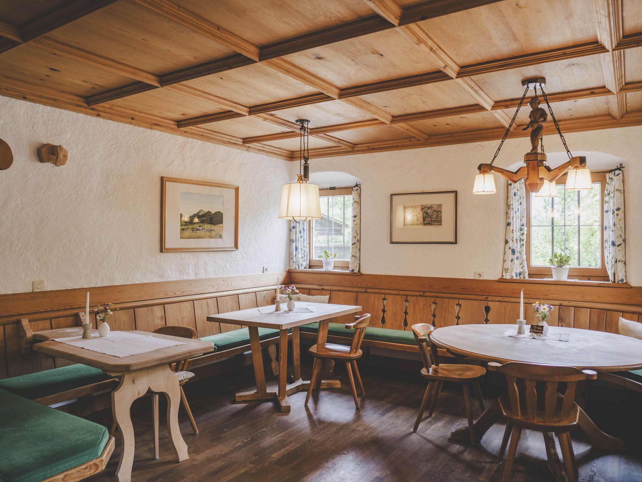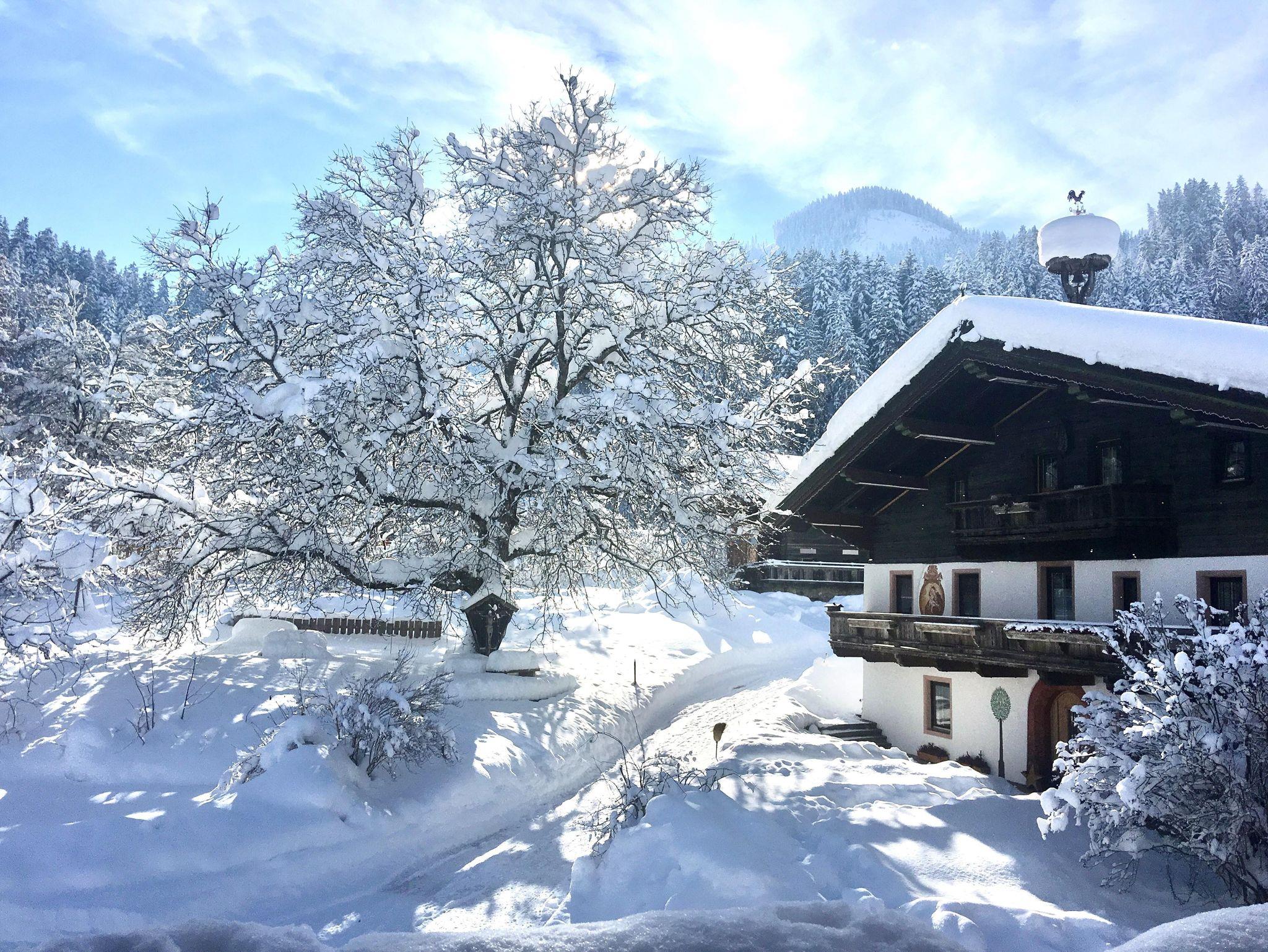 Die Fenster eröffnen den Blick auf den wunderschönen Walnussbaum, den Bauerngarten und den majestätischen Wilden Kaiser. Hier vereinen sich moderner Komfort und rustikaler Charme zu einem unvergesslichen Aufenthalt.