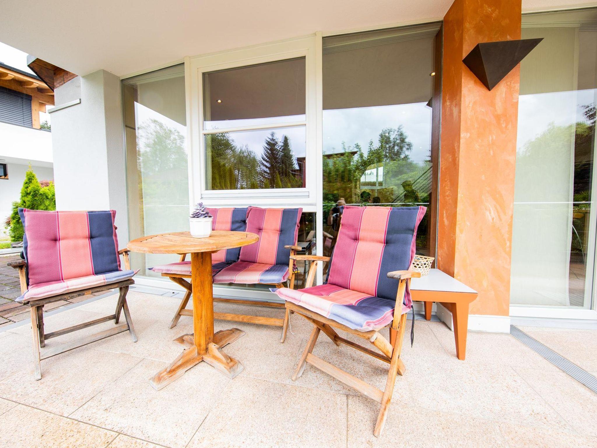 Um das Haus finden Sie einen großzügig angelegten Garten mit Sonnenliegen, Grillmöglichkeiten und Kinderspielplatz, der allen Bewohnern vom Kaiser Chalet und der Kaiser Suite zugänglich ist. Eine finnische Panorama Garten-Sauna und der gemütliche Ruheraum warten außerdem auf Sie (nur bei Buchung Kaiser Chalet), im Sommer auf Anfrage. Hier in unserem Ferienhaus in Söll sind auch Hunde jederzeit herzlich willkommen.