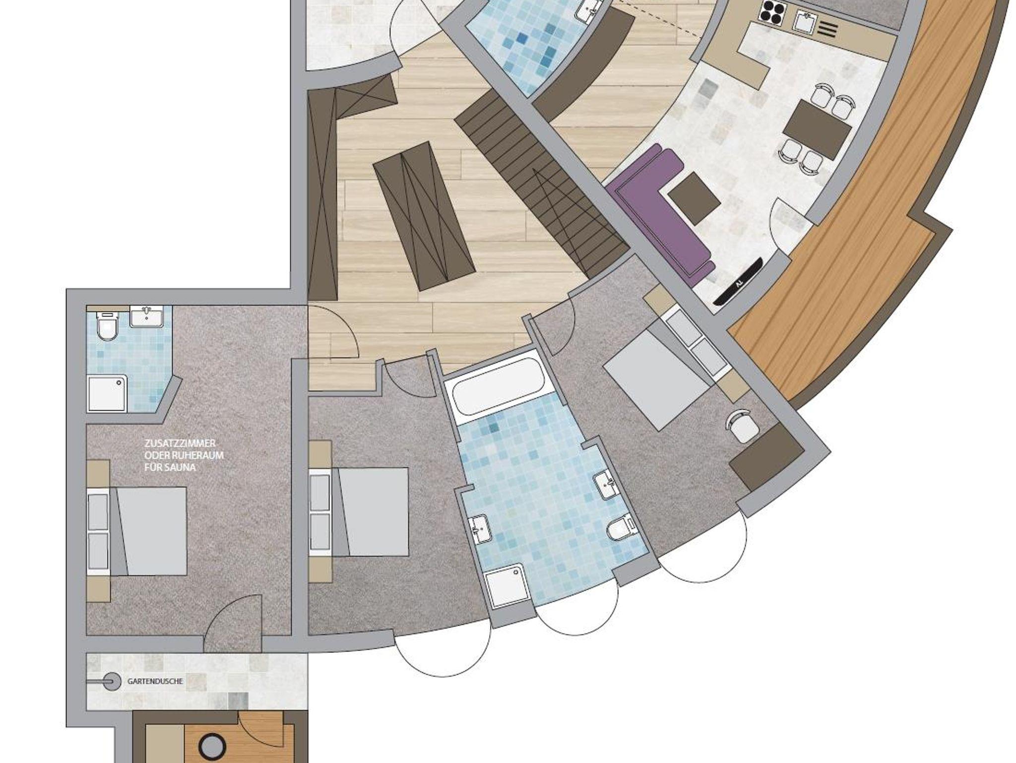 Geeignet für 11 bis 14. Hier sehen Sie einen detaillierten Plan des großräumigen Ferienhauses. Der Ruheraum von der Finnischen Aussensauna kann auch als zusätzliches Zimmer für 2 Personen verwendet werden. Buchungsmöglichkeit während des ganzen Jahres. Ideal für Kinder. Auch Ihre vierbeinigen Freunde sind hier erwünscht. (maximal 2 Hunde auf Aufpreis)