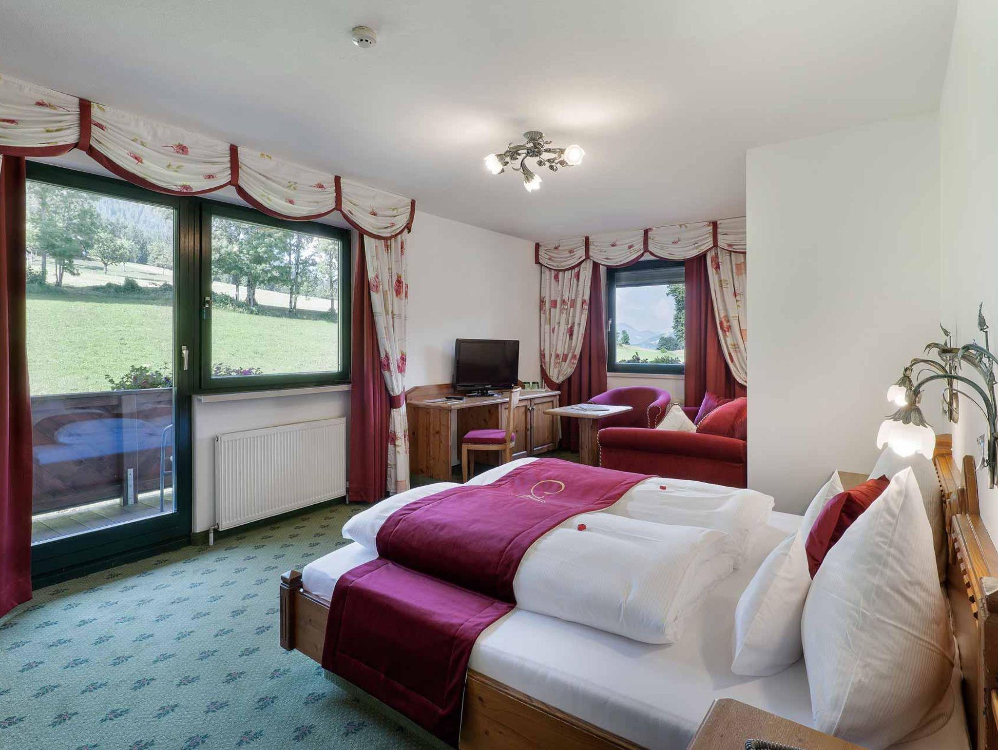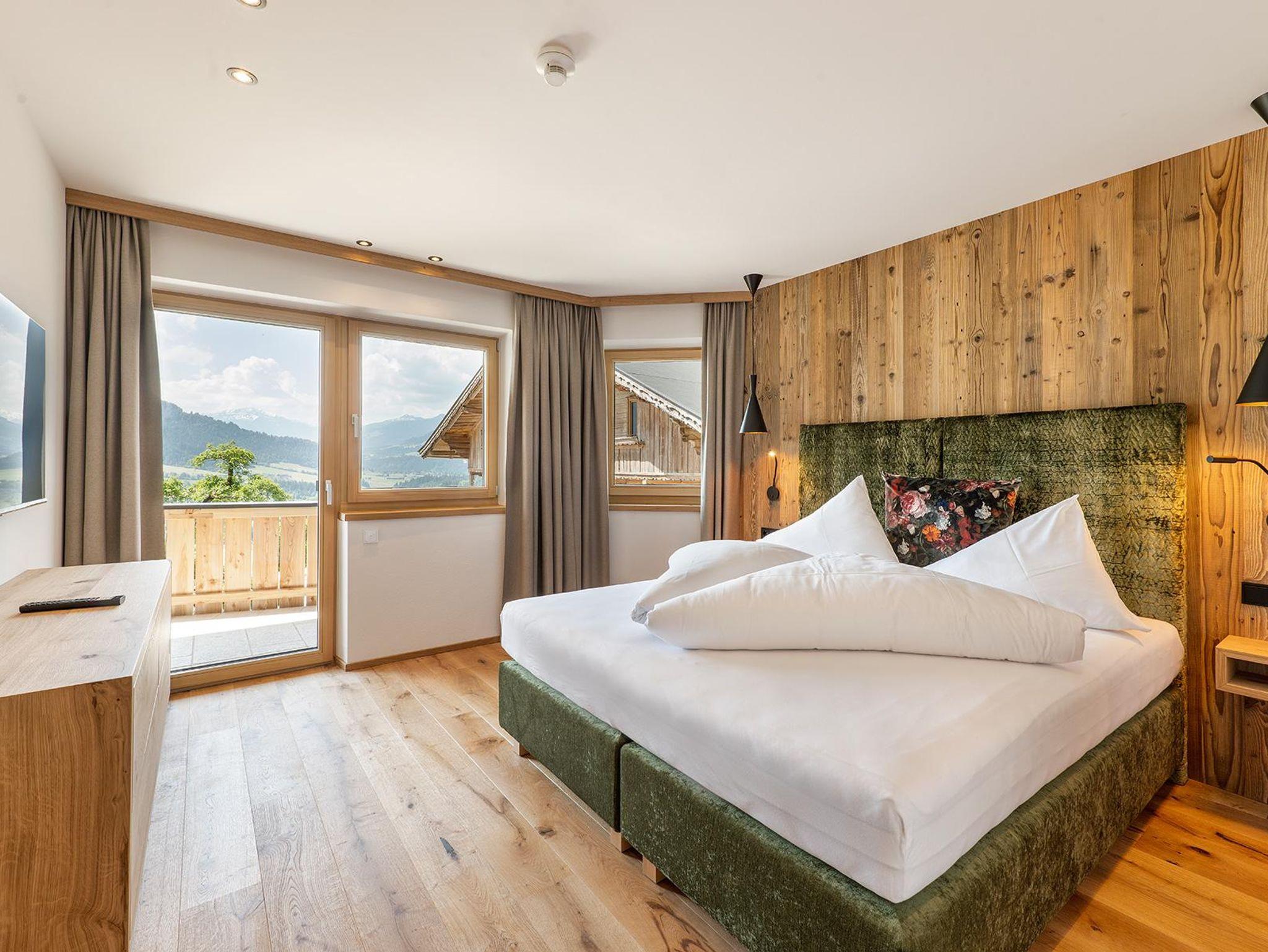 Ein gemu¨tliches Zimmer oder Suite in den Bergen beziehen unsere Ga¨ste im Hotel AlpenSchlössl. In jedem Fall kommen sie in den Genuss einer außergewo¨hnlich scho¨nen Gegend. Auch unseren herzlichen Schlo¨sslservice lassen wir ihnen immer zuteil werden, ob beim genussreichen Fru¨hstu¨ck auf der großzu¨gigen Sonnenterrasse, bei einem heiteren Gespra¨ch an der Rezeption oder bei einem edlen Tropfen an unserer Hotelbar.