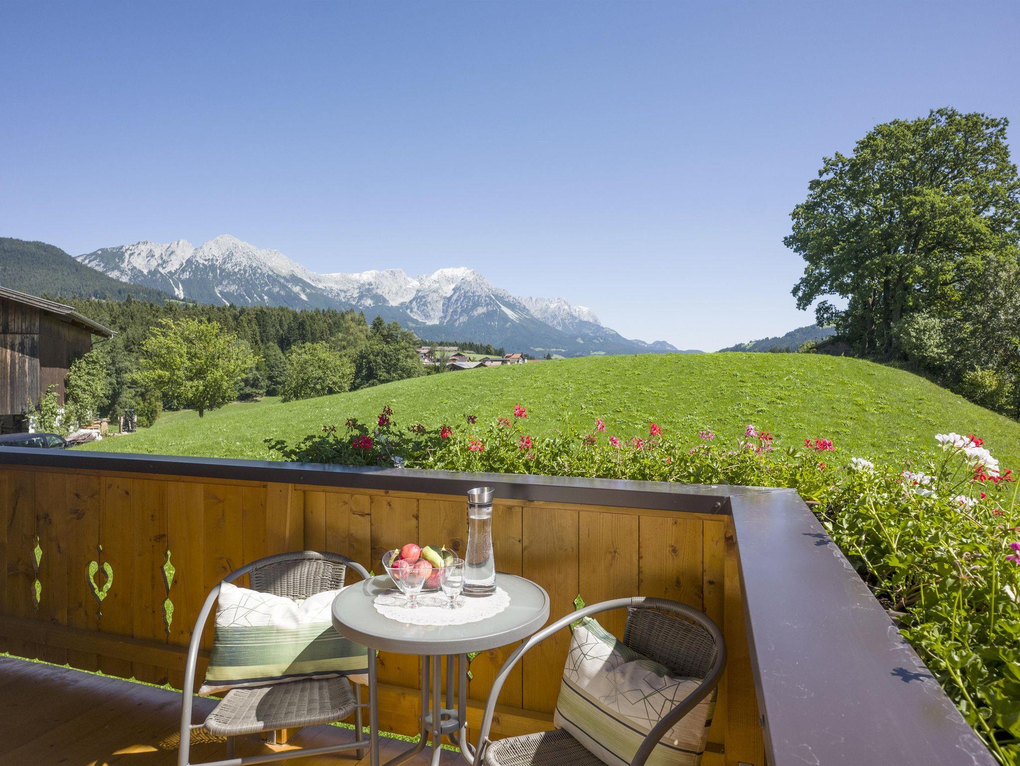 Top Lage, sehr ruhig und doch nahe dem Zentrum. Zimmer mit wunderbaren Ausblick auf den Wilden Kaiser und Söll.