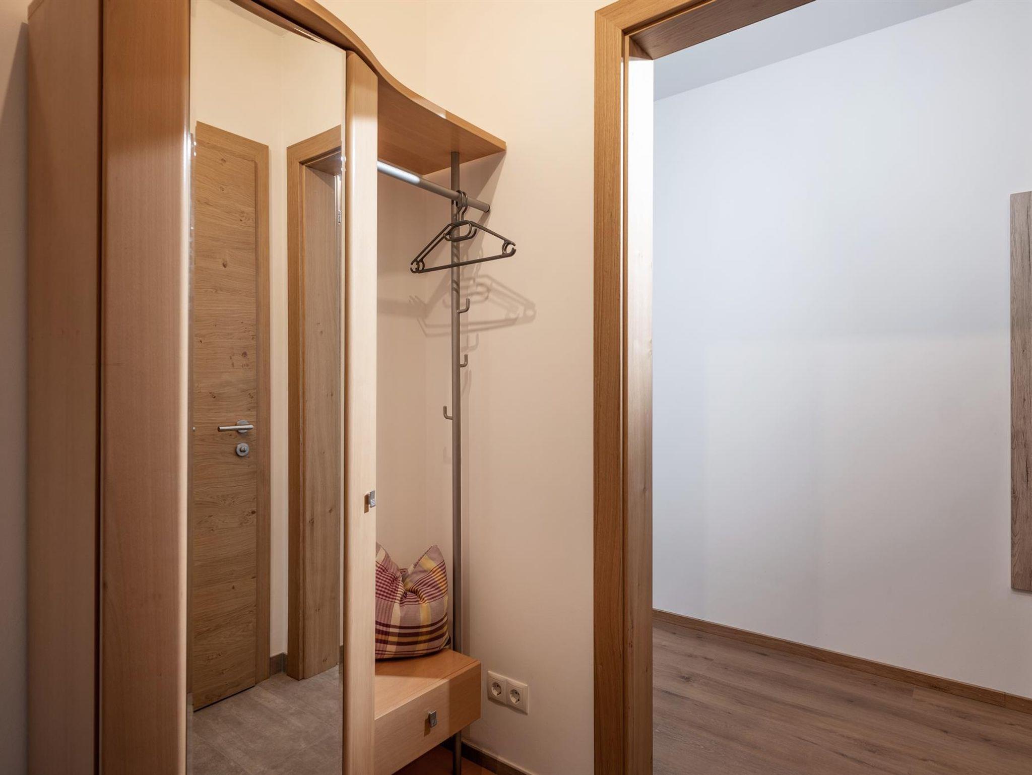 Das Appartement ist geteilt in zwei Stockwerke. Im Erdgeschoss befindet sich das Schlafzimmer mit einem Doppelbett für zwei Personen. Auch das Badezimmer und das separate WC befinden sich im Erdgeschoss. Vom Gang gelangen Sie in den Garten der über eine Terrasse verfügt. Im zweiten Stock befindet sich die großzügige und vollausgestattete Wohnküche mit einer Doppelschlafcouch. Von hier gelangen Sie auf die Dachterrasse die mit perfektem Blick auf den Wilden Kaiser einzigartig ist.