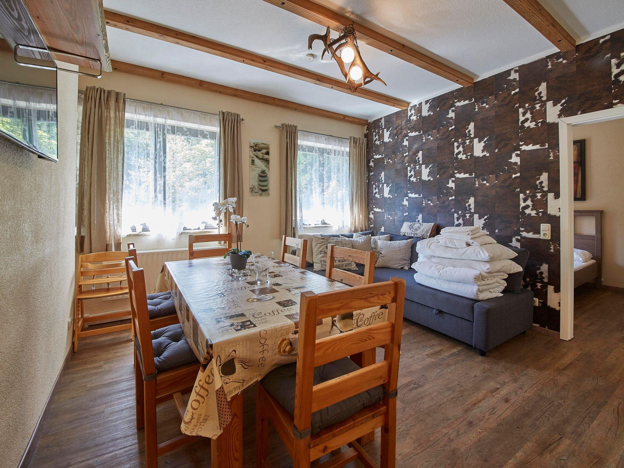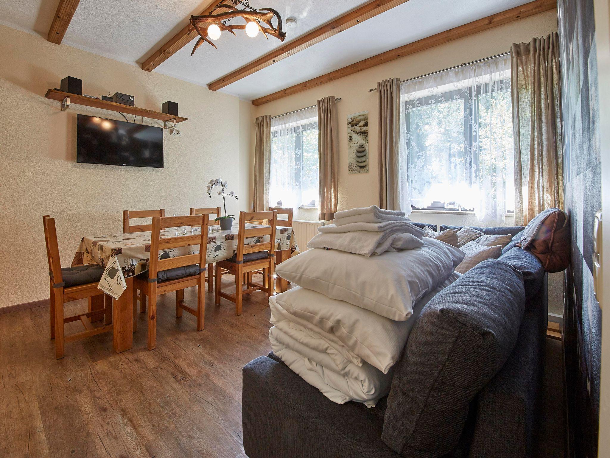 Unser Appartement Riverside bietet auf 63 m² eine gemütliche und komfortable Wohnung im Herzen von Saalbach und liegt nur wenige Minuten zu Fuß vom Zentrum von Saalbach entfernt. Das Appartement, buchbar für bis zu 6 Personen, bietet 2 Schlafzimmer mit Doppelbett, einen Wohnbereich mit Schlafsofa, eine offene, vollausgestattete Küche, eine Sofalandschaft sowie einen Essbereich, ein Badezimmer mit Dusche und Toilette sowie einen Balkon. Ein Abstellplatz für dein Skiequipment sowie ein kostenloser Parkplatz vor dem Haus stehen dir zusätzlich zur Verfügung.