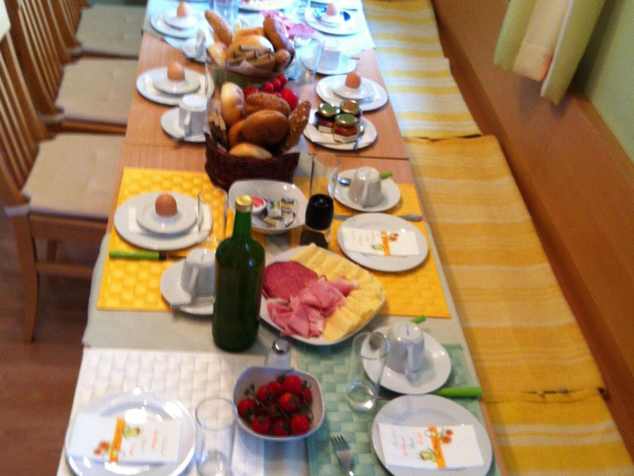 Zum Frühstück serviert Sabine Weiß herzhafte, hausgemachte Spezialitäten wie zum Beispiel herrliche Marmeladen, uriges, im Holzofen gebackenes Brot und kostbarer Blütenhonig. Ihr Frühstück können Sie auch auf der sonnigen Dachterrasse genießen. So kann der Tag beginnen.