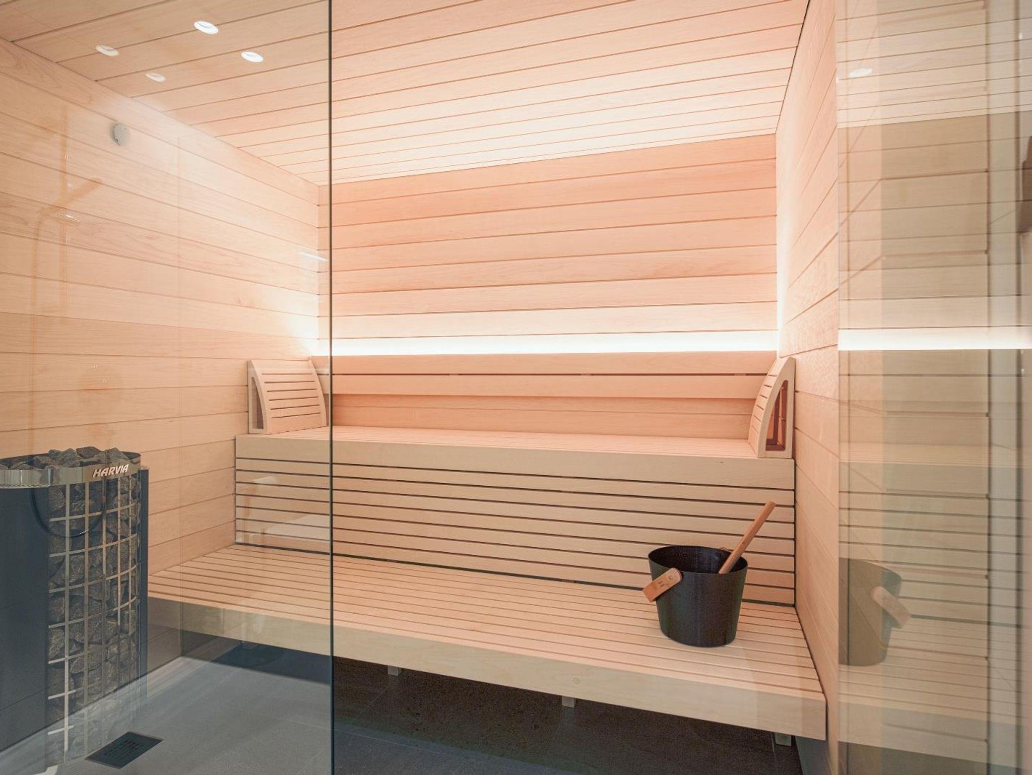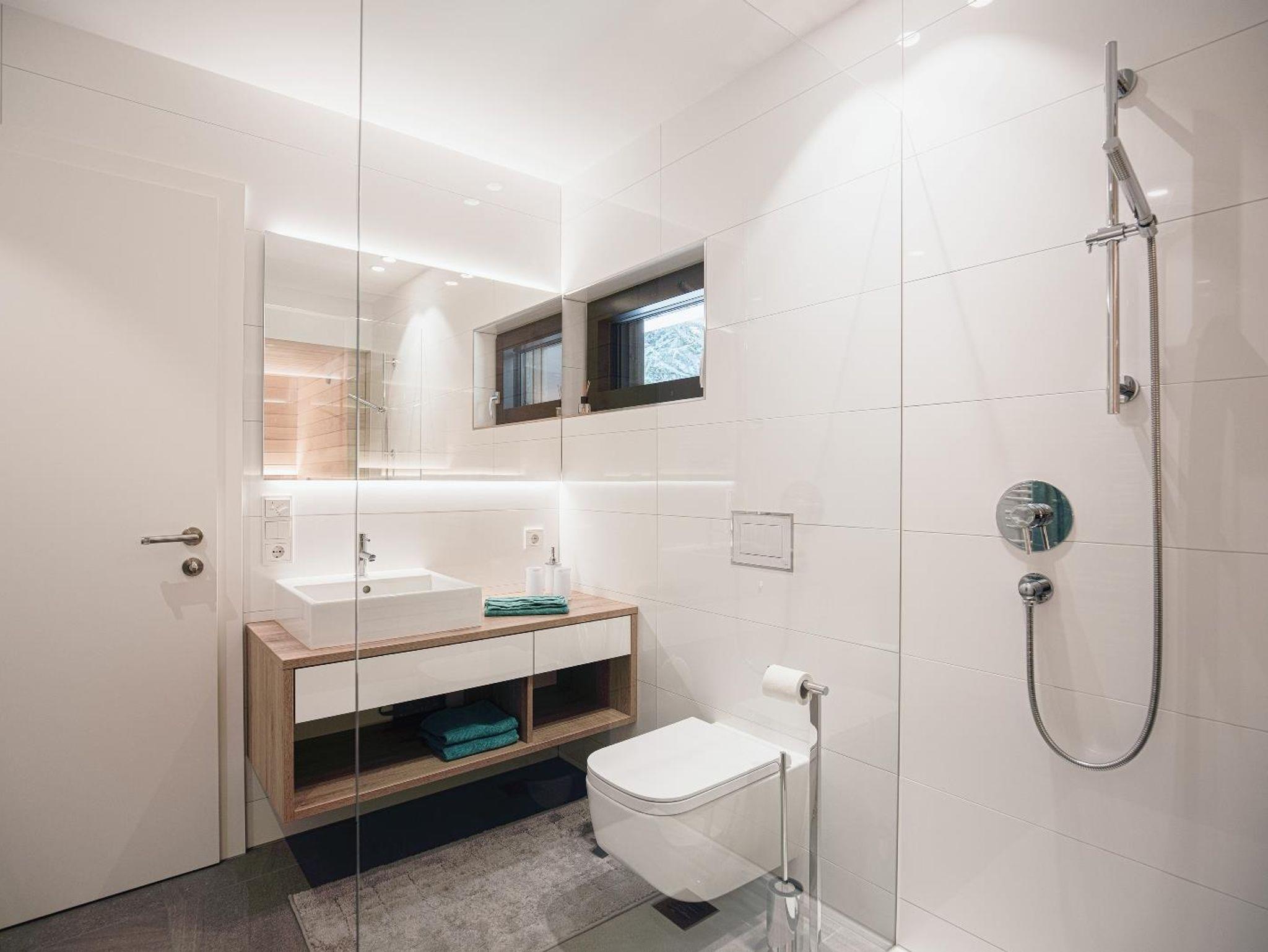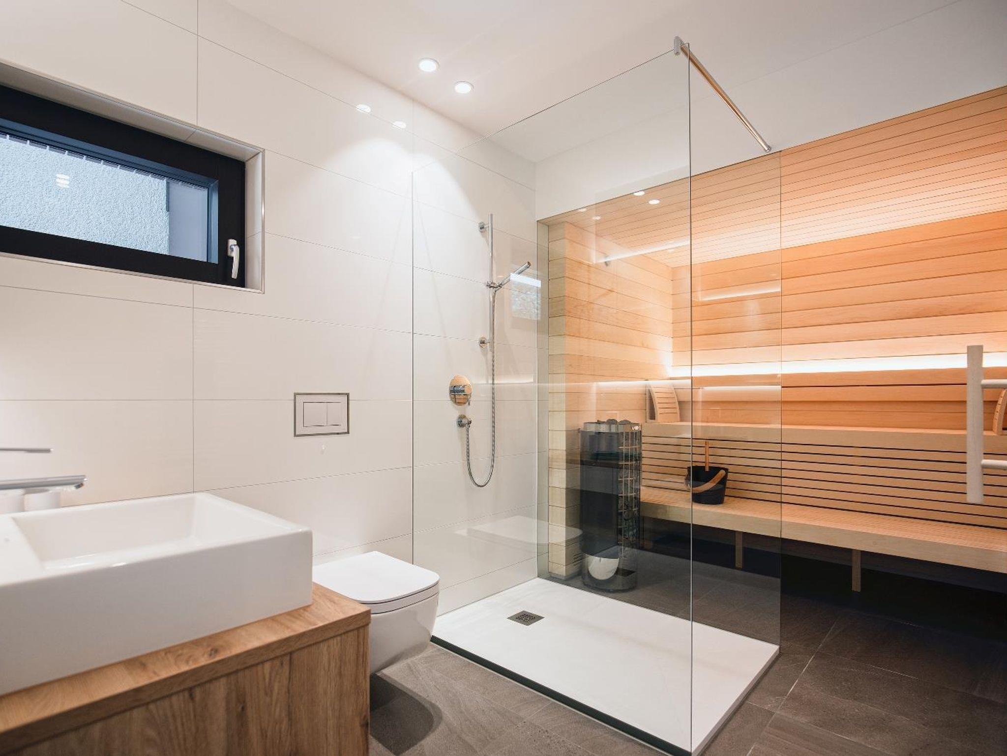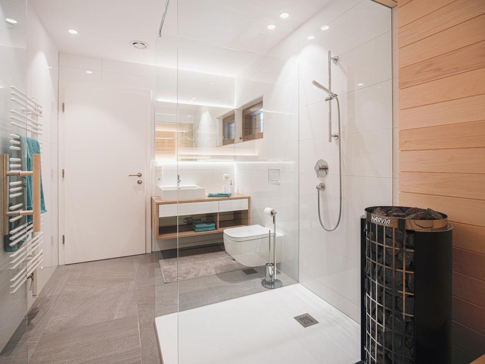 • 1 Badezimmer mit begehbarer Dusche mit WC und eigener Sauna