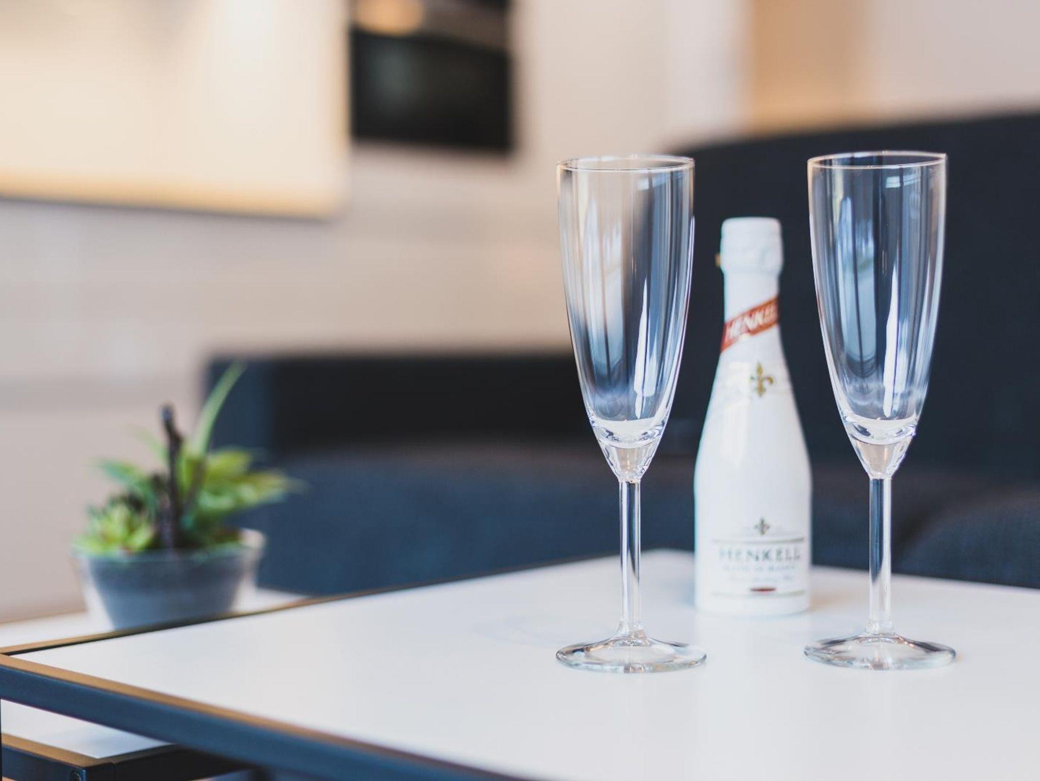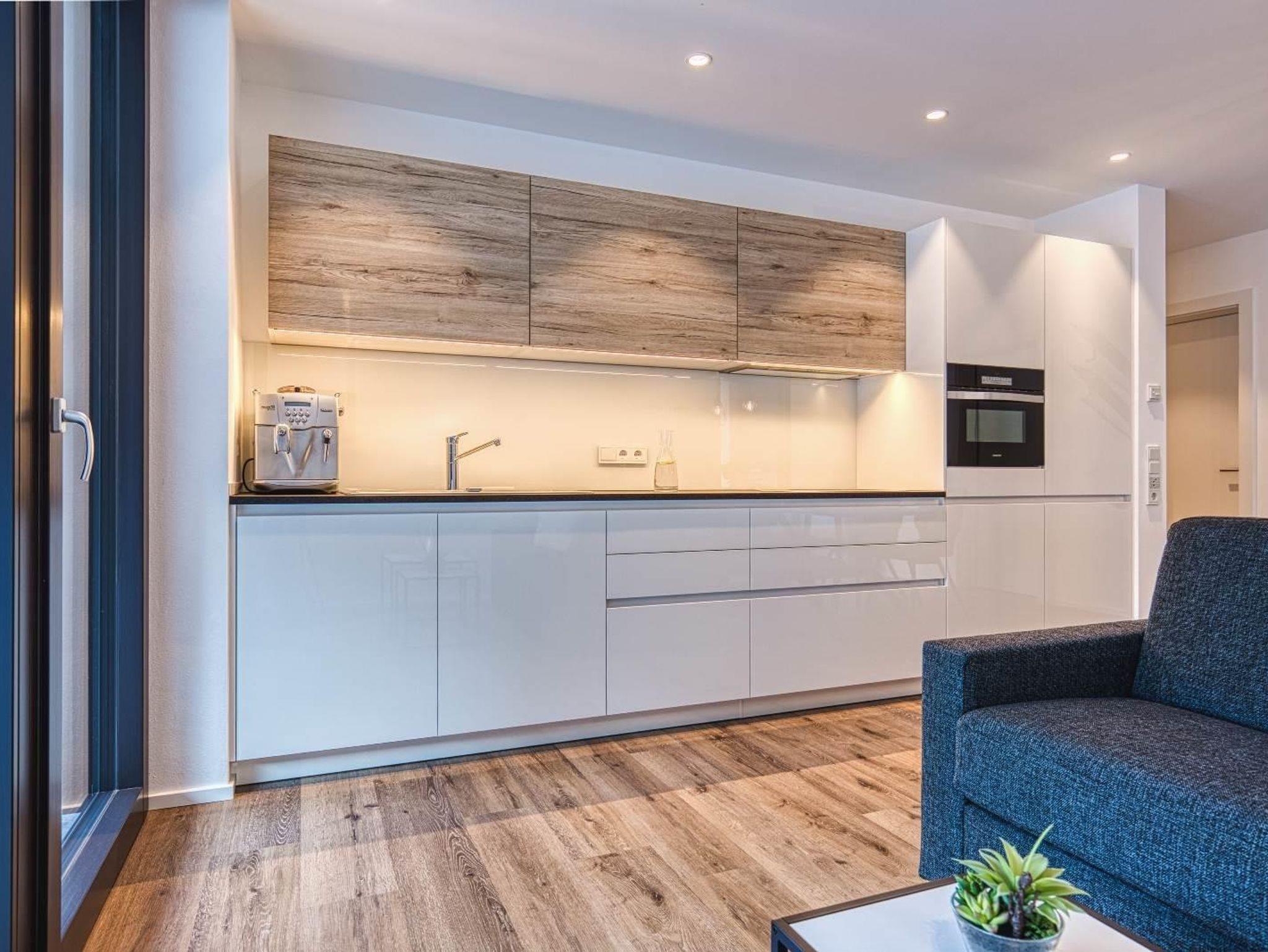 • 1 geräumige Wohnküche mit TV und hochwertigen Geräten (Kochfeld, Kombibackofen, Geschirrspülmaschine, Kühlschrank mit Gefrierteil)