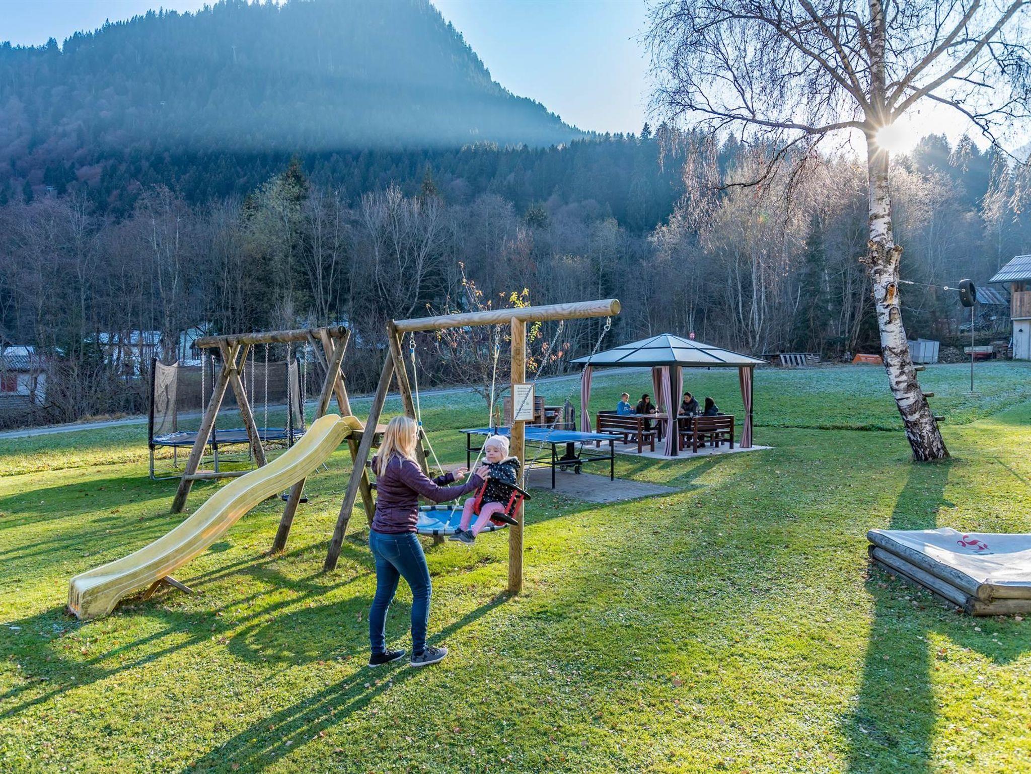 Spielplatz mit Grillplatz, Gorillarutsche, Schaukeln, Rutschbahn, Tischtennis sowie Sandkasten und Riesentrampolin. Allwetterbad Aquarena sowie der beleuchtete Radweg sind in wenigen Schritten erreichbar.