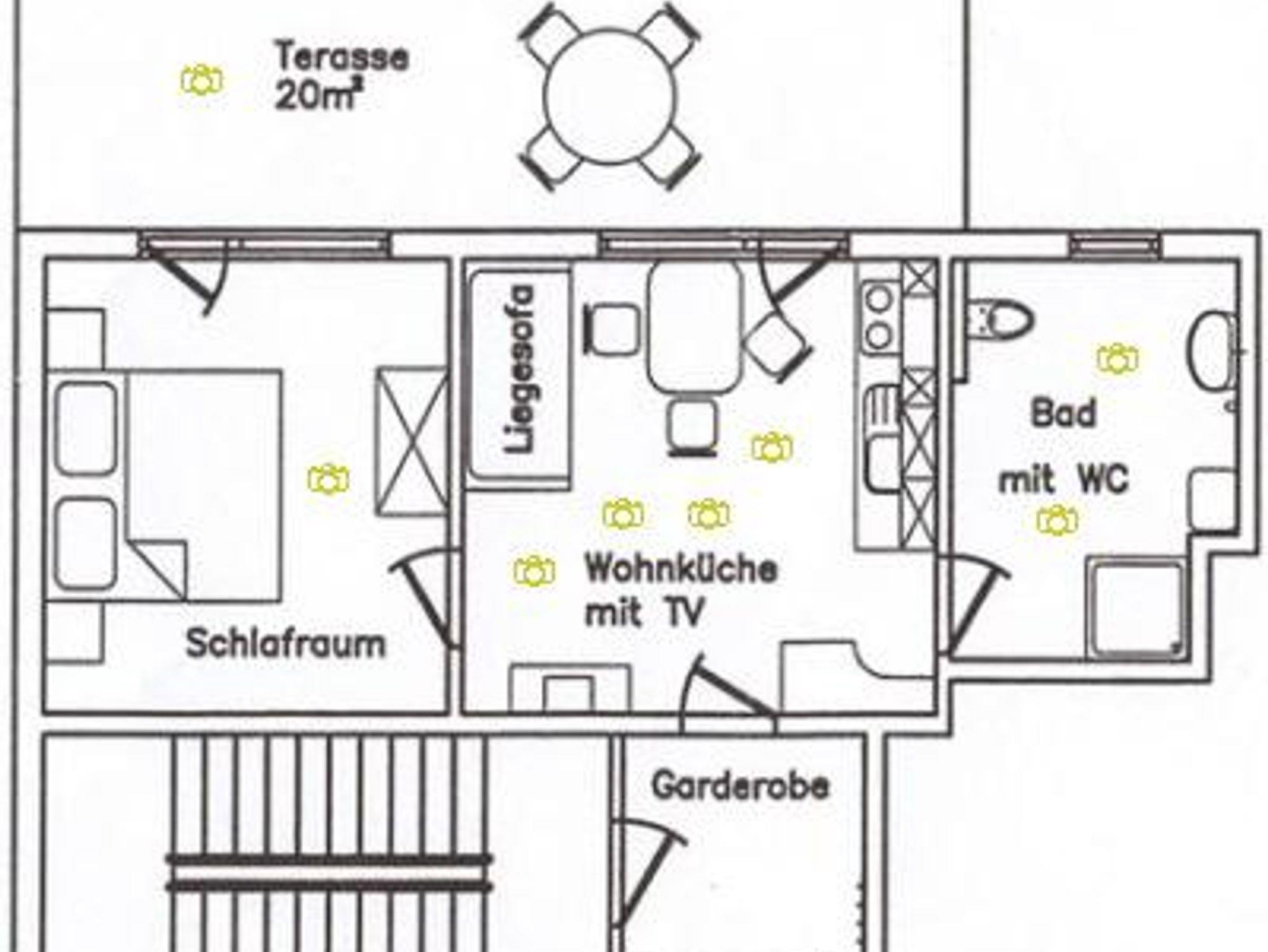 Die Wohnung 1 ist eine liebevoll, eingerichtete Wohnung (38 m²) für 2 Personen mit einer Garderobe, einem Schlafzimmer, einer Wohnküche mit Kochnische, Sofa und TV, einer Dusche mit WC und einer 20m² großen Terrasse.