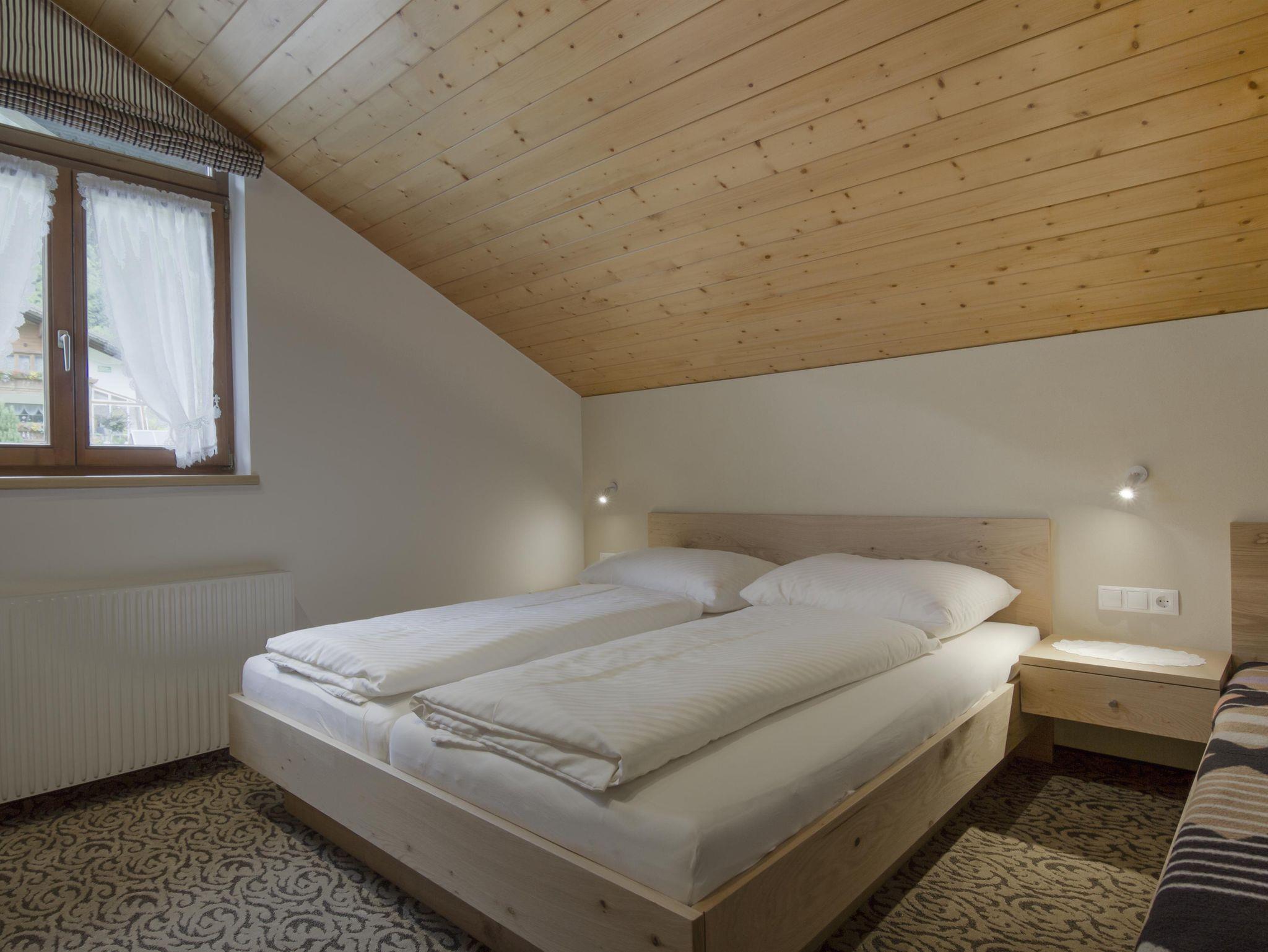 Wohnung 5 mit 50m² für 3-5 Personen verfügt über zwei Doppelzimmer, einem Badzimmer mit Dusche und separatem WC, einer Küche mit Esstisch und einem Nordbalkon. Die Küche ist komplett ausgestattet mit 4 Platten Ceranfeld, kleiner Grill u. Backautomat, Kühlschrank, Geschirrspülmaschine und Filter,- und Nespressokaffeemaschine, Wasserkocher, Toaster.