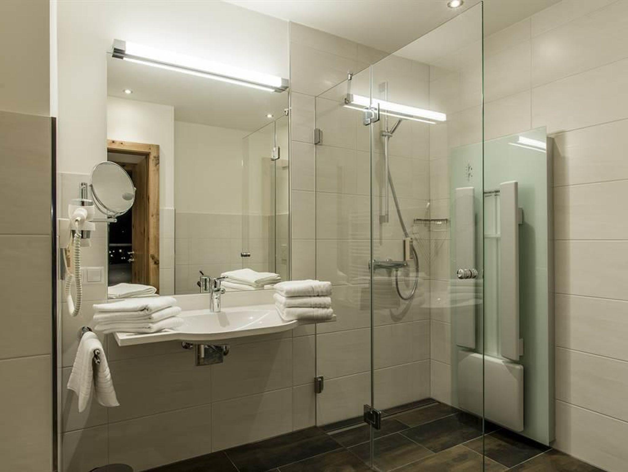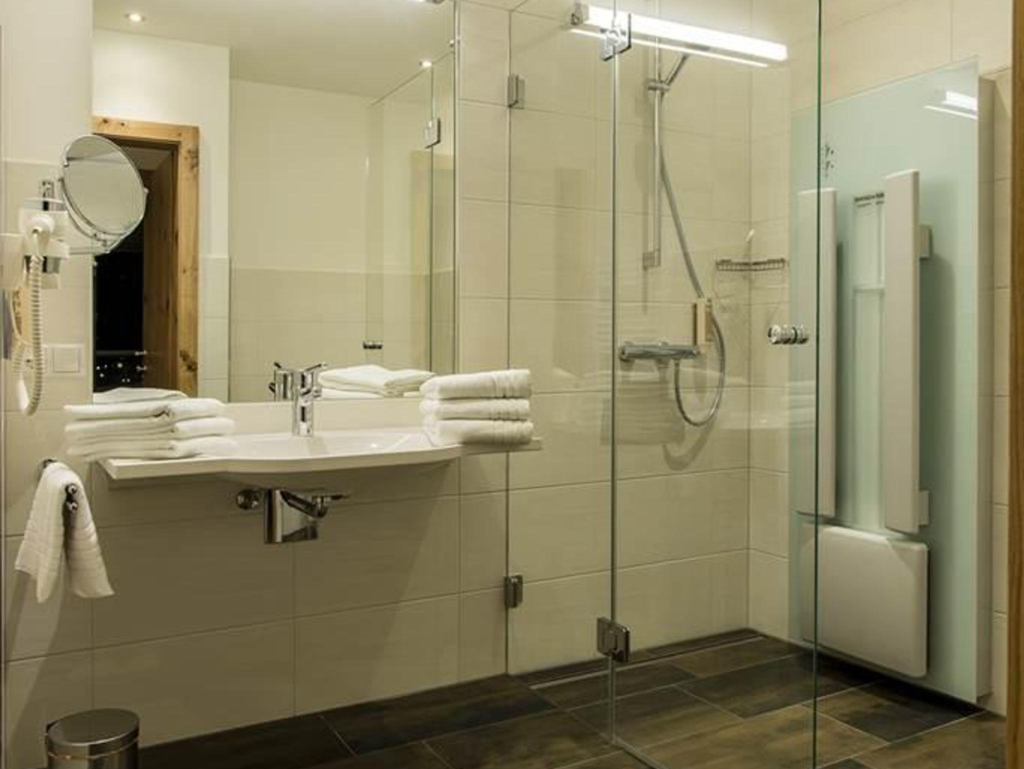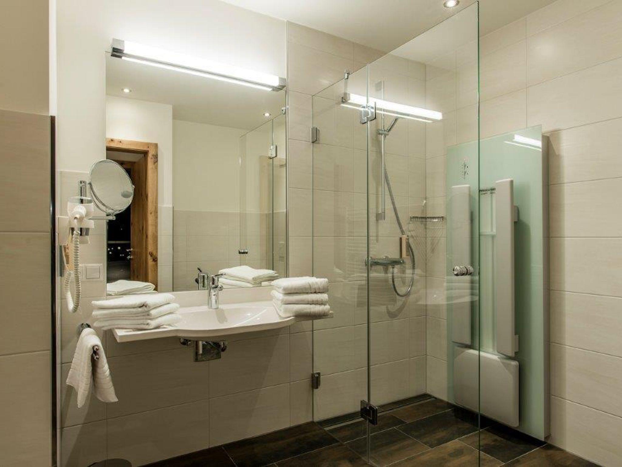 1 Badezimmer mit begehbarer Dusche mit Physiotherm INFRAROTPANEEL und WC,