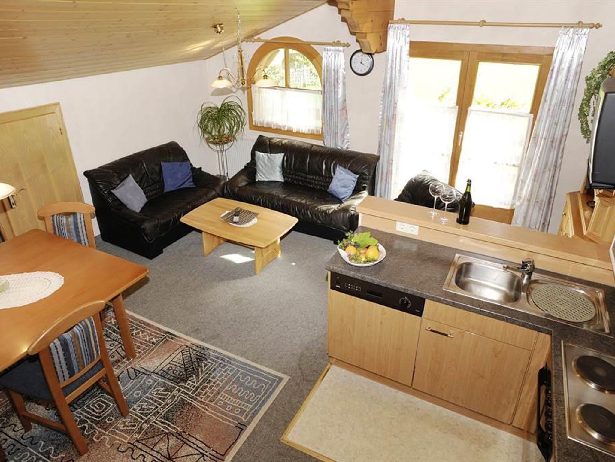 Süd-Ost Lage, ca. 75 m² im Dachgeschoß gelegen ausgestattet mit: 3 Schlafzimmer (davon ein kleineres Kinderzimmer in der Dachschräge), Dusche, sep. WC, Wohnzimmer mit Essecke, vollständig ausgestattete Küche mit Geschirrspüler, Sitzecke, TV, Radio und W-LAN, Flur mit Kaminofen, Balkon.