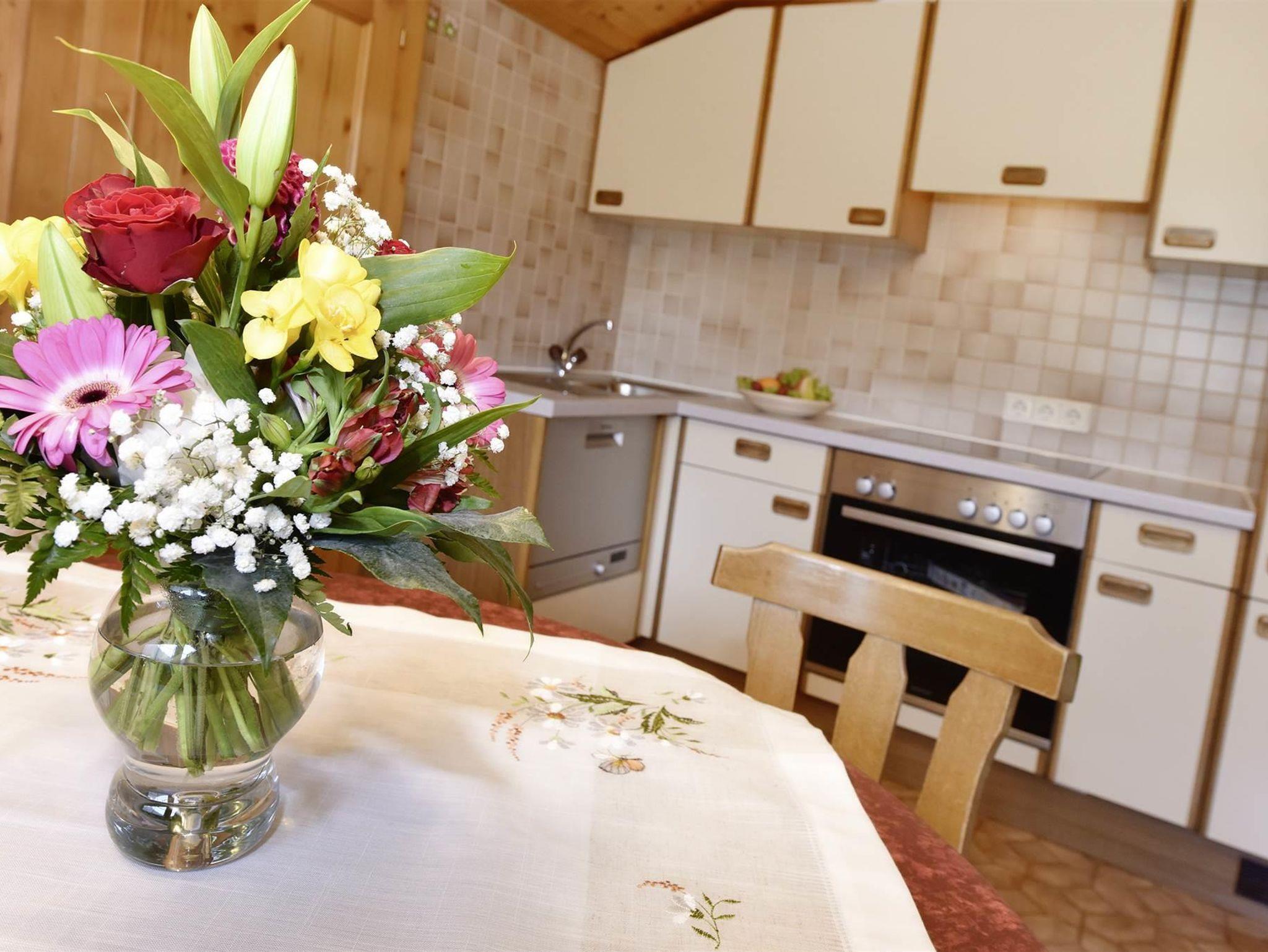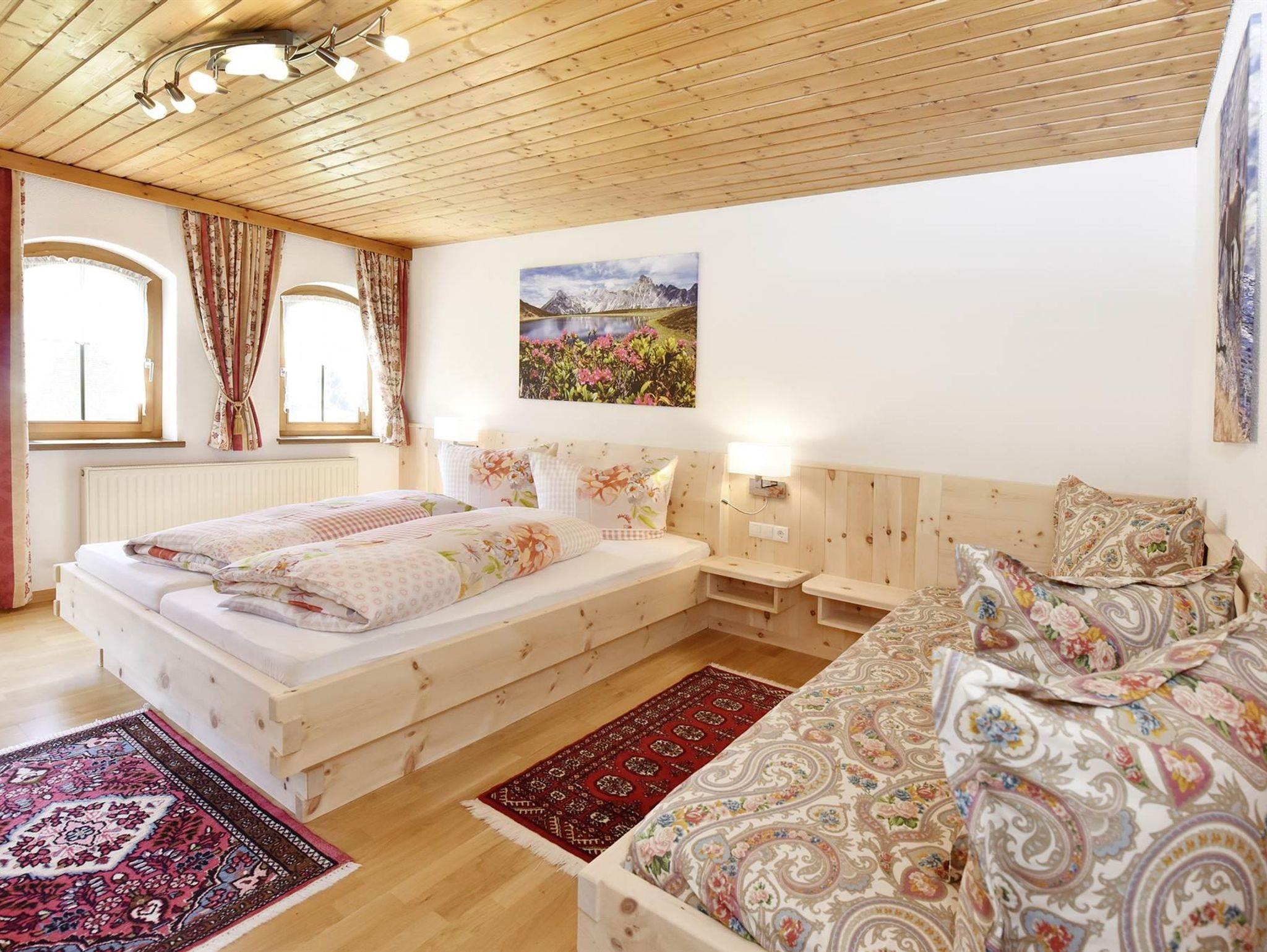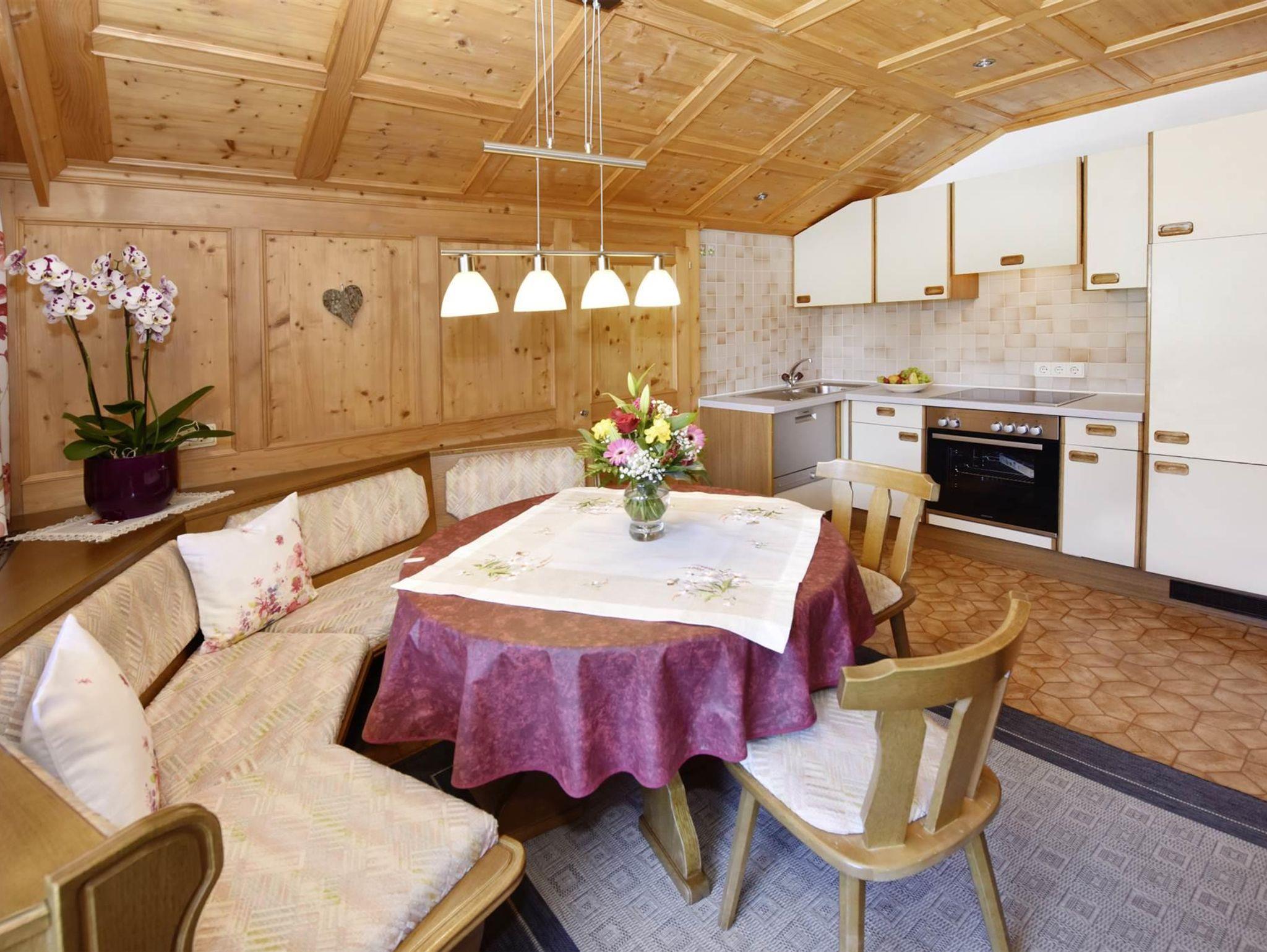 55 m², in sich abgeschlossene, gemütlich-rustikale Wohnung bestehend aus: 2 Schlafzimmer (Doppel- und Zweibett), DU/WC, Wohnküche mit Sitzecke, Balkon (15 m²) mit Gartenmöbeln und einem Vorraum.