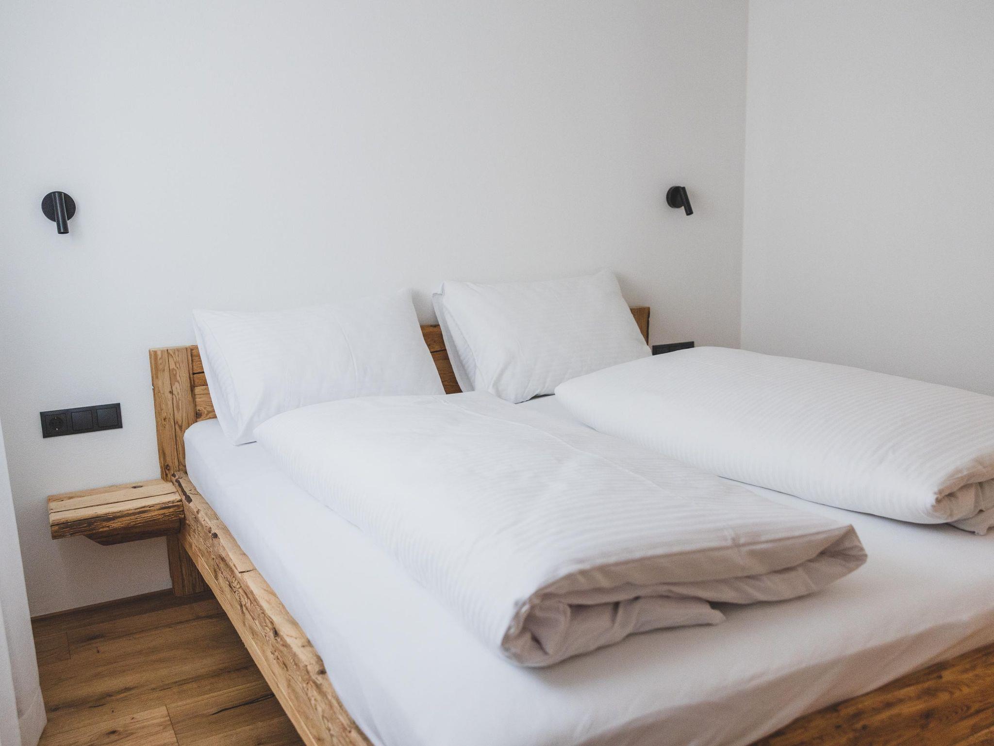 Im Montafonerhaus wurden in Wohn- und Schlafzimmern der ursprüngliche Stil des Hauses erhalten und revitalisiert, Küche und Badezimmer wurden modern und hochwertig gestaltet. Dadurch entstand ein interessanter Kontrast zwischen Alt und Neu.
