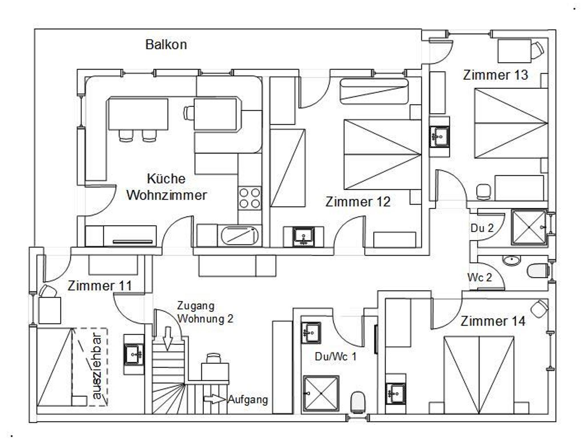 Je nach Bedarf kann der Zugang von der Wohnung 2 betreten werden oder nicht.