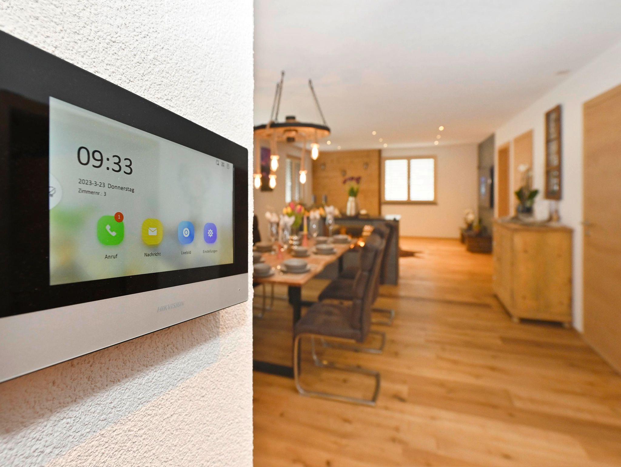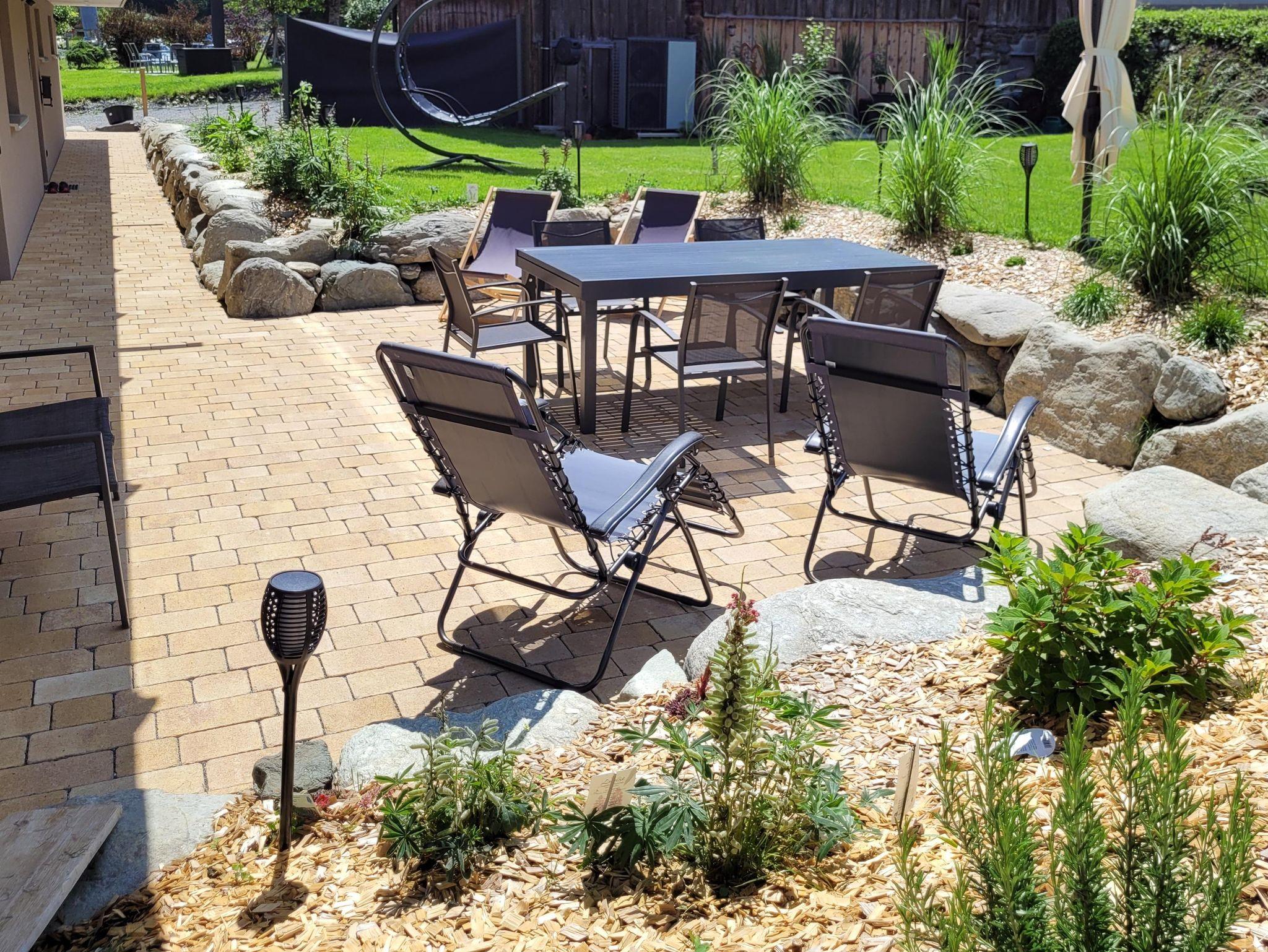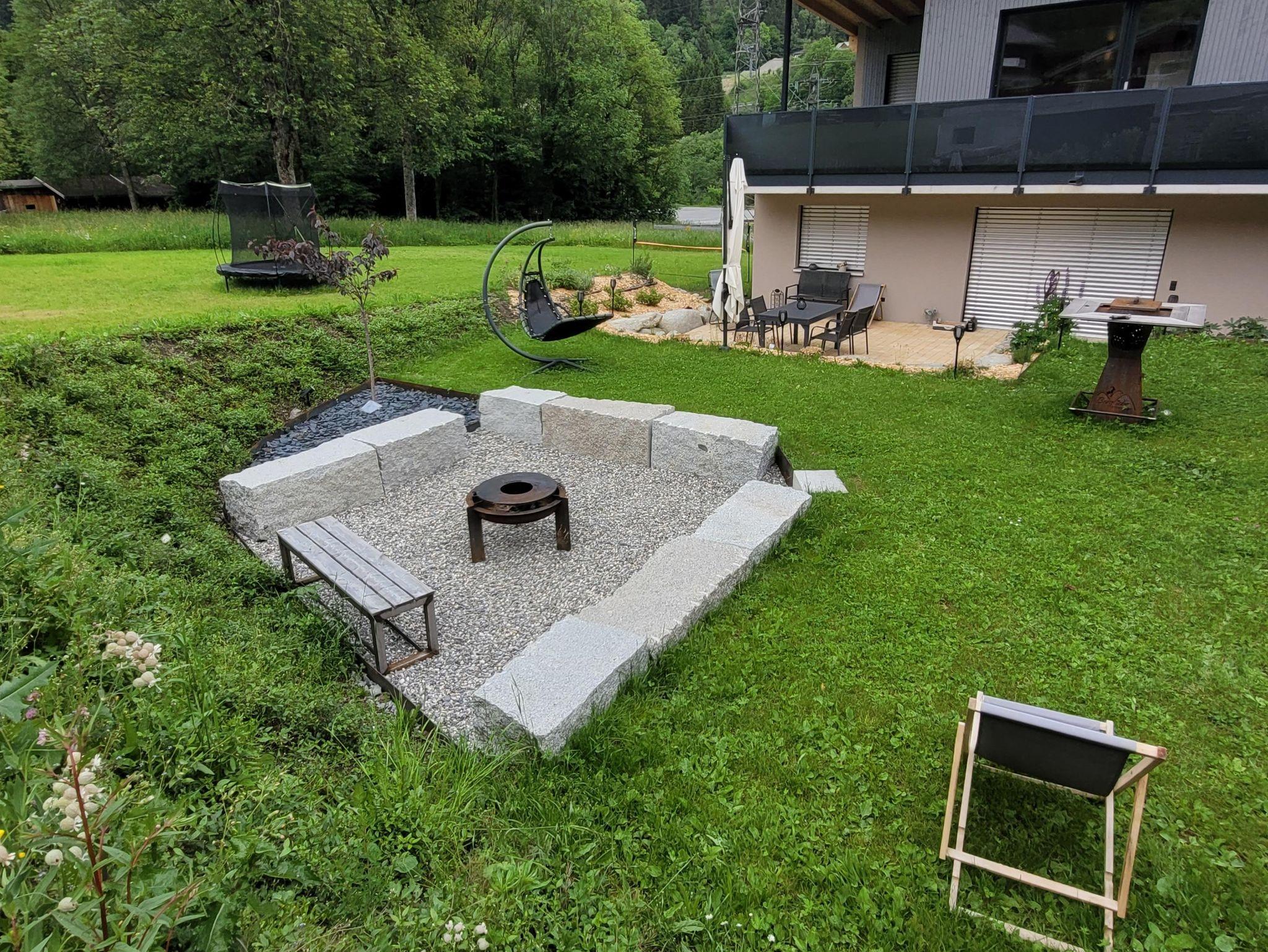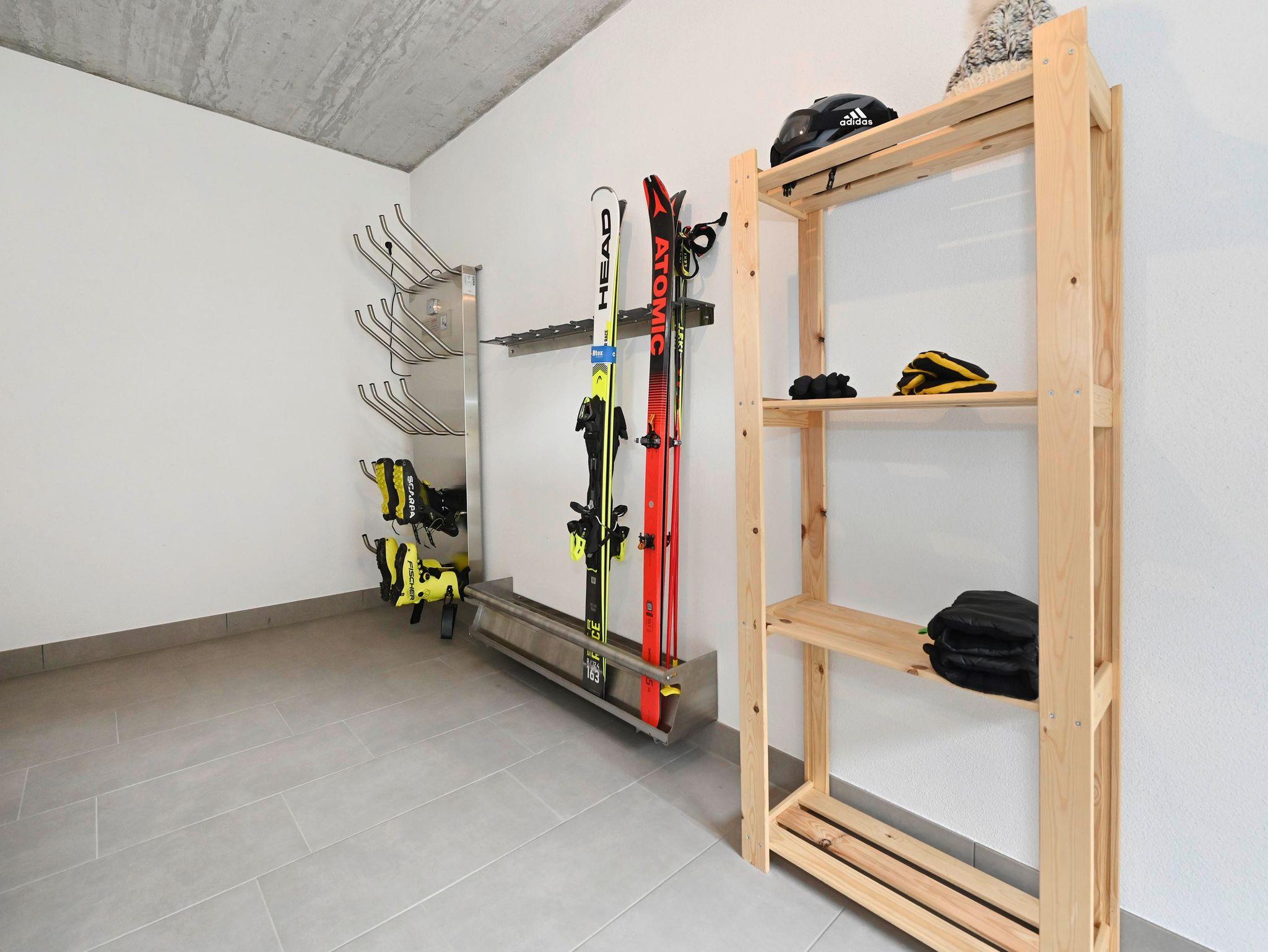 2 Schlafzimmer mit Doppelbetten (1 x zusätzliches Stockbett) und jeweils TV, 2 x Wellnessduschen und WCs, zusätzliches Gäste-WC, Wohnzimmer mit Ess- und Sitzbereich, voll ausgestattete Küche, E-Kamin, 65 Zoll TV, Ski- und Trockenraum mit Schuhtrockner, Feuerschale und Sitzplatz im Freien