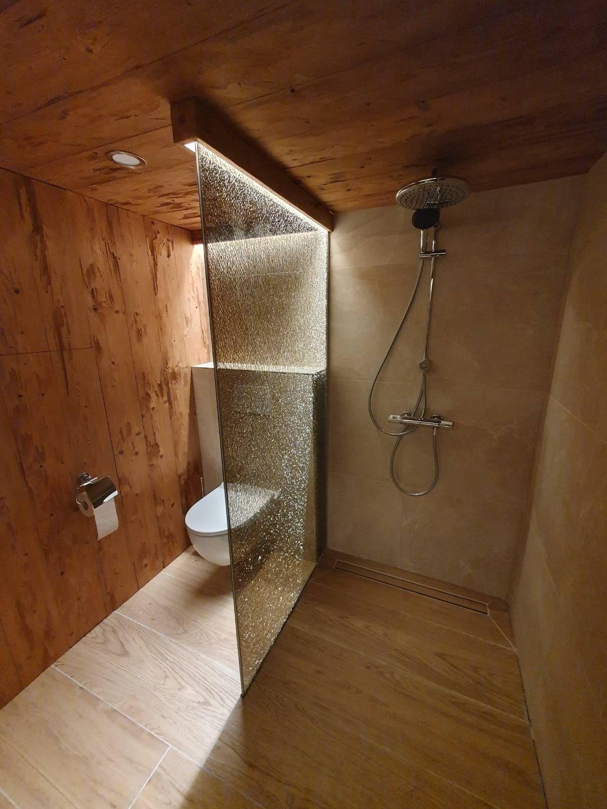 1 Badezimmer mit Dusche, WC und Waschbecken