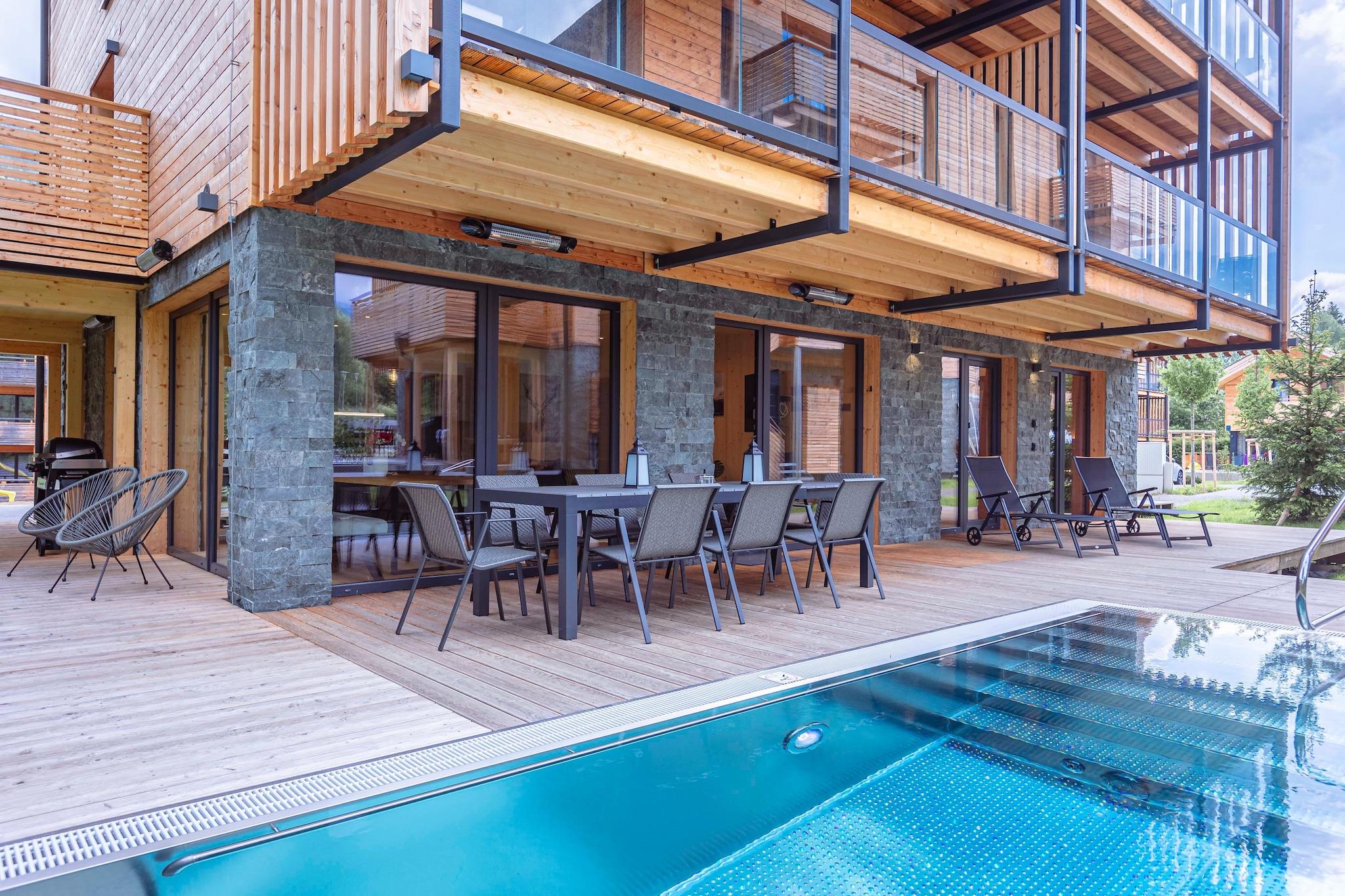 "Oplev uovertruffen komfort og elegance i denne eksklusive lejlighed på 112 m², der er designet til nemt at rumme op til 8 gæster. Denne bolig er perfekt beliggende kun få meter fra Kreischberg-svævebanen og tilbyder en exceptionel blanding af moderne luksus og udendørs eventyr. Lejlighedens enestående træk er dens private spa-område, inklusive en finsk sauna og en spektakulær terrasse på 70 m². Nyd afslapning året rundt med en opvarmet pool med modstrømssystem, varmestråler og elektrisk grill - perfekt til både rolige øjeblikke og livlige sammenkomster. Lejligheden har fire elegant møblerede soveværelser, der alle er udstyret med en dobbeltseng for at sikre afslappende nætter. Forkæl dig selv med tre smukt indrettede badeværelser, inklusive en regnbruser, et badekar og et en-suite badeværelse, samt et separat gæstetoilet for ekstra bekvemmelighed. Hjertet i lejligheden er den åbne opholdsstue, hvor du finder en hyggelig siddeplads og et fladskærms-tv, ideelt til afslapning efter en dag med udforskning. Det moderne køkken er en kulinarisk fryd, komplet med bestik af høj kvalitet, køkkengrej, keramisk kogeplade, ovn, køleskab med fryser og ..." opvaskemaskine. Yderligere faciliteter inkluderer elkedel, brødrister og Nespresso-kaffemaskine. For at gøre dit ophold problemfrit, er der et startsæt med opvaskemaskinetabletter, opvaskemiddel, svamp, affaldsposer, rengøringsmidler og et viskestykke. Der er gratis Wi-Fi overalt, og MurauCard (sommer) tilbyder yderligere lokale fordele og aktiviteter.